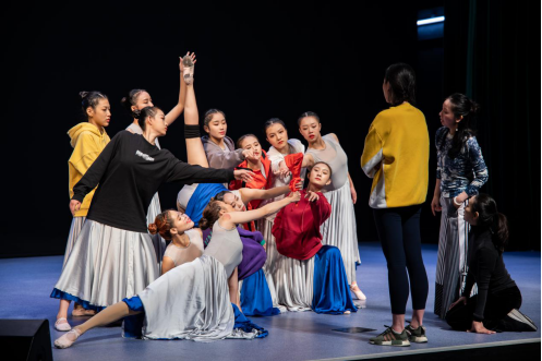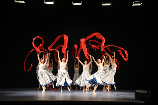 舞蹈作品《奔流》整合了我校传媒与艺术学院与体育教育训练学院的师生资源,集结了艺术体操、技巧、蹦床、排球、手球以及校街舞队等学生,强强联合,将体育与舞蹈完美碰撞与交融,此次排练由杨珏负责整体构思编排、陆颖娜主抓技术训练及学生管理、周仕怡负责动作完善和舞美协调,在节目师生齐心协力下,舞蹈《奔流》最终完美呈现。