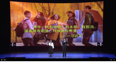 在活动中,不仅是看到的生动的话剧,听到的激昂的朗诵,更看到了一群闪光的中国青年。就好像话剧中的红枫叶,是红色的,跳跃着生命华彩。象征着那一群群扎根基层的为精准脱贫贡献力量的新时代青年们,是黄文秀,扎根百色大山,为精准扶贫贡献青春。我又想到了看的话剧,精准扶贫,一麦相承。看到了,用知识改变命运,技术加快推进,用自己的知识为脱贫攻坚贡献力量的青年,他们在祖国的怀抱下成长,又撑起民族的脊梁。我将会更加努力的学习,以奋斗的画笔,书写梦想的华彩,用澎湃的激情奏响爱国之歌。