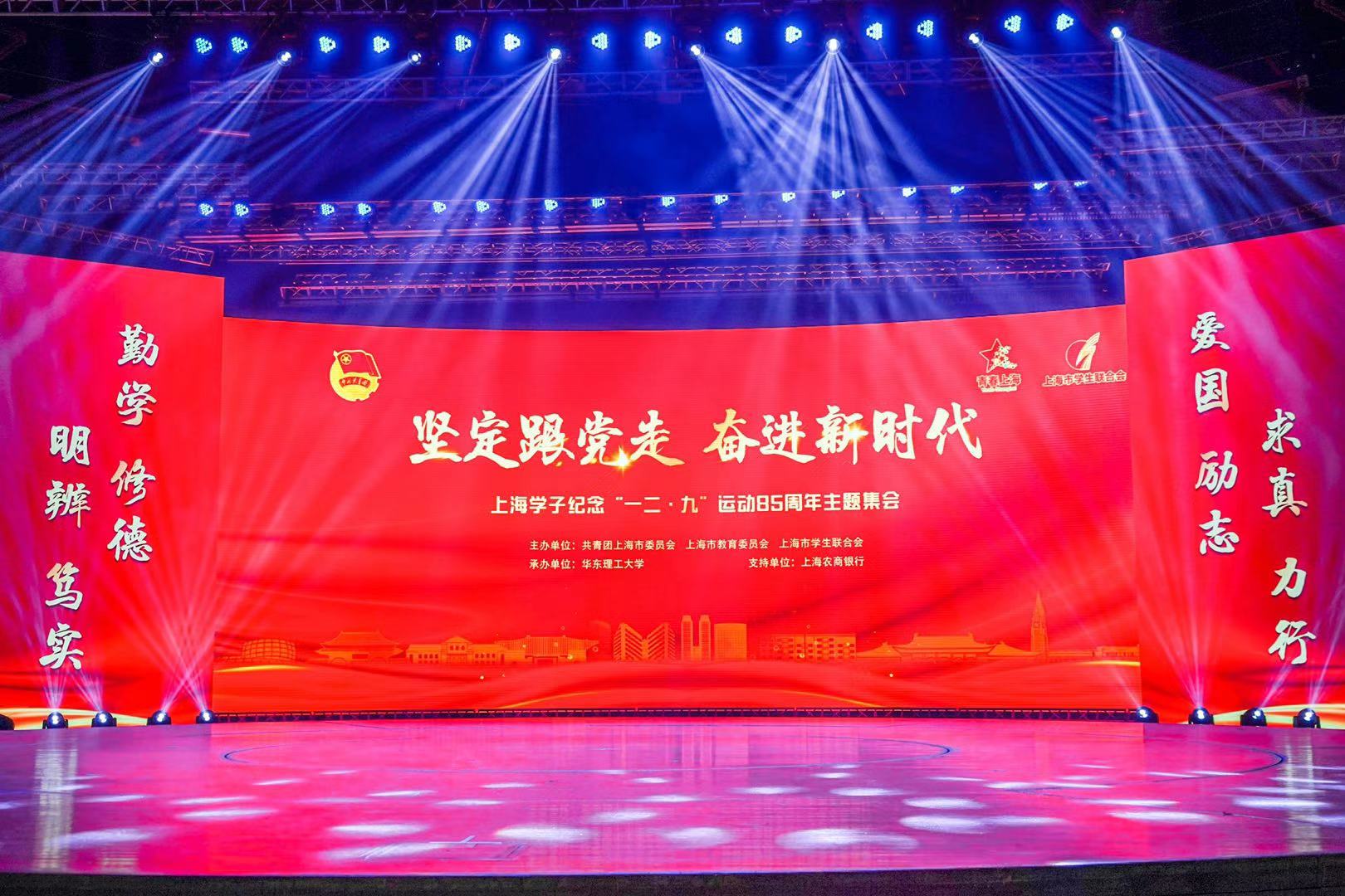 本网讯 2020年12月9日,由团市委、市教委、市学联共同主办,华东理工大学承办的“坚定跟党走 奋进新时代”——上海学子纪念“一二·九”运动85周年主题集会顺利举行。团市委、市教委、市少先队等领导出席活动,我校团委、学生会、研究生会等师生代表参加活动一起缅怀先辈荣光,重拾当年热血。
