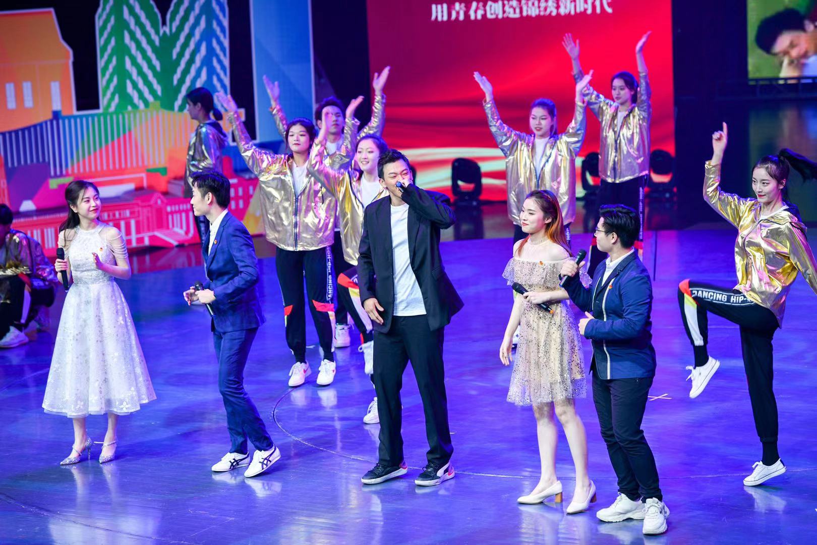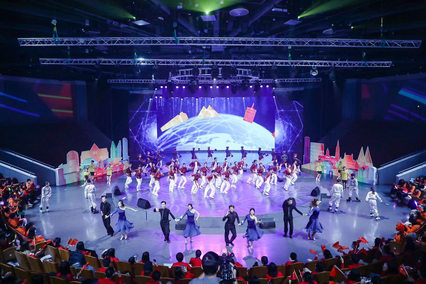 在集会主题展演部分,我校与上海音乐学院、上海工程技术大学合作展示活力青春的歌舞《青春恰时来》。伴随着我校校园歌手周越用RAP演艺的激情洋溢的歌曲,上体青年与其他高校的青年一起踏着欢快的舞步点亮历史,高歌梦想。随后,来自我校的SPS花样跳绳社、轮滑社和德艺啦啦操社的学生表演者与华东理工大学表演团一起合作节目《挑战》,展示了当代青年青春向上、朝气蓬勃、勇于竞攀的一面。