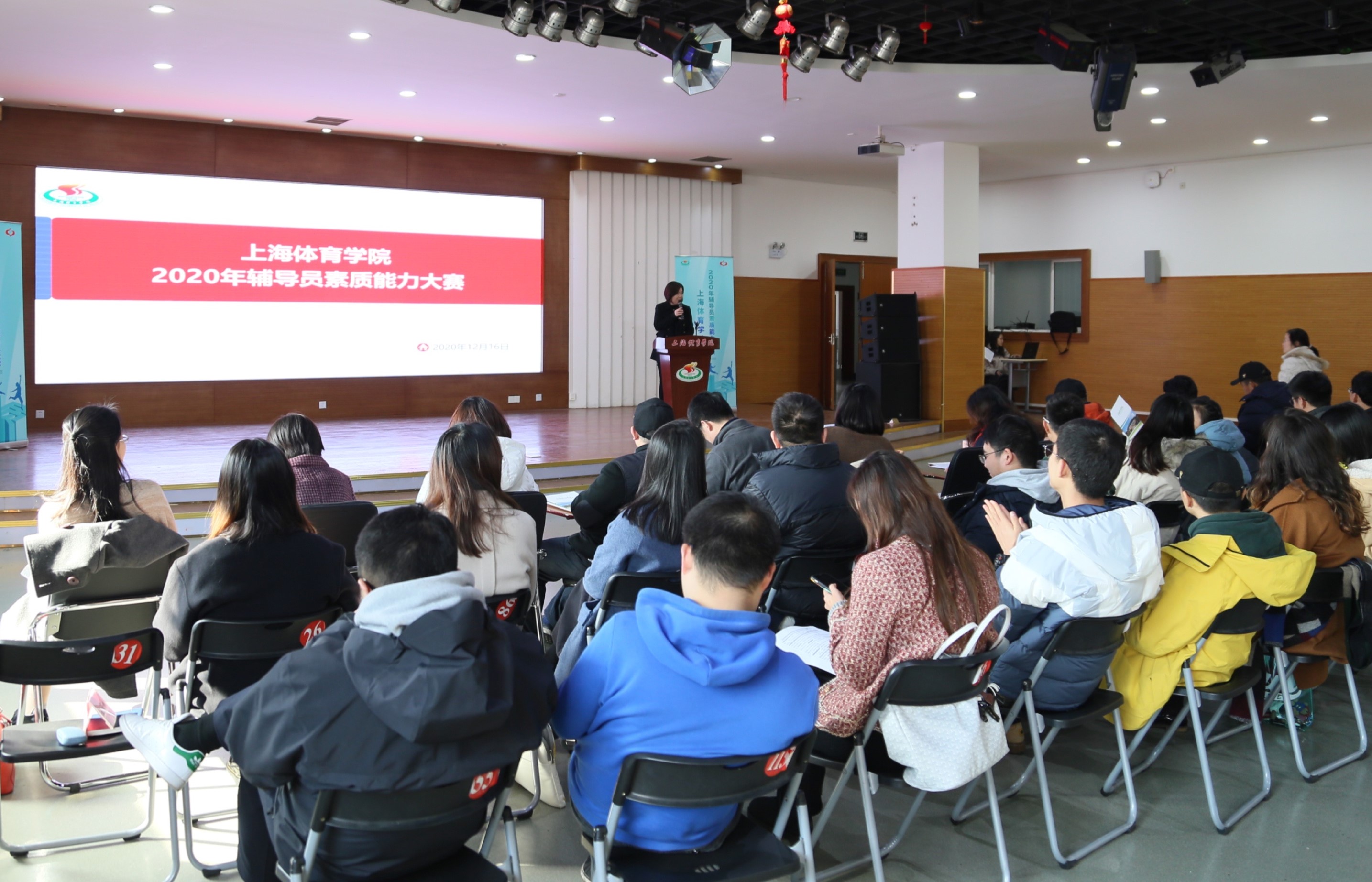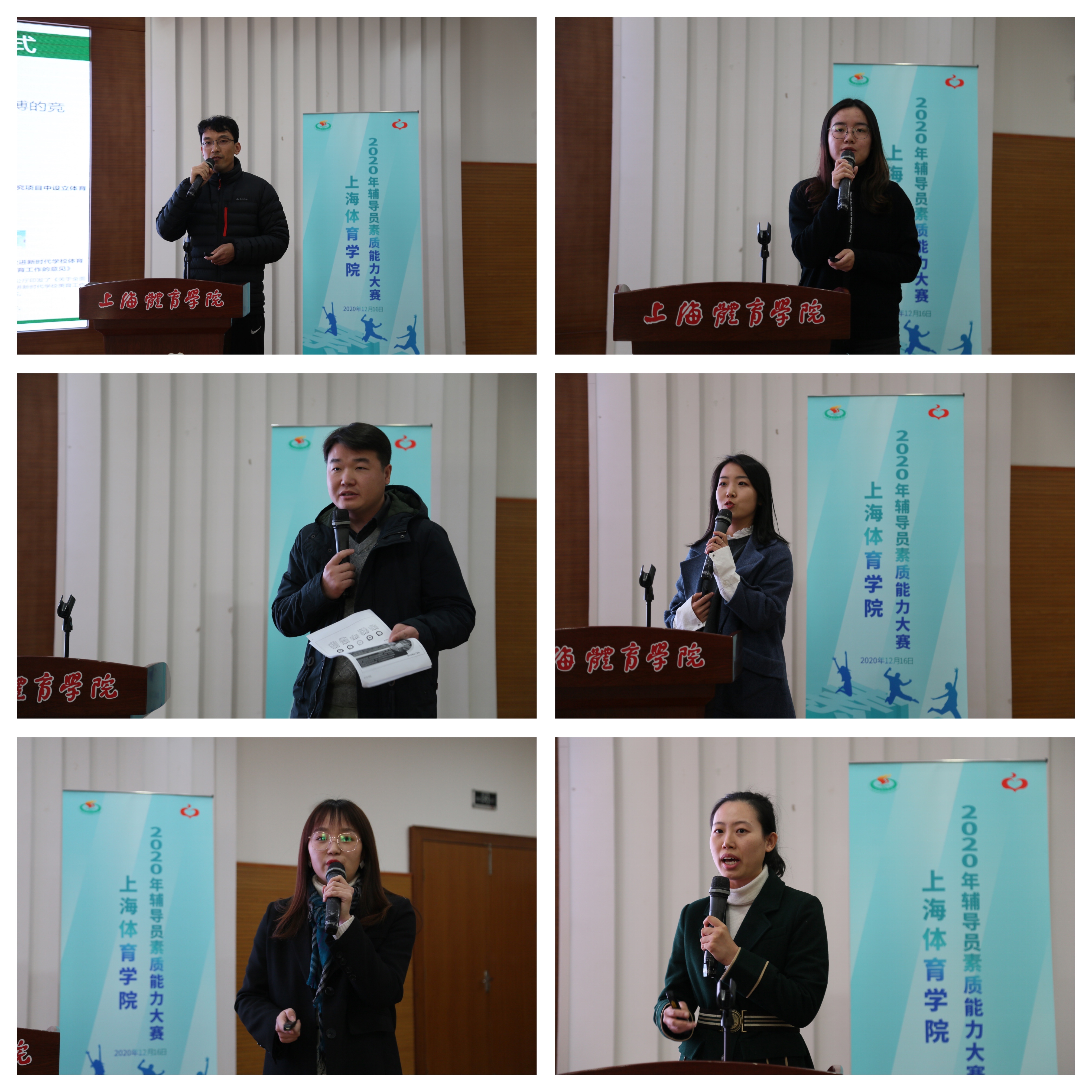 本次辅导员素质能力大赛共分为笔试和现场展示两部分。笔试部分所报送的博文及工作案例已在“上体辅导员”微信平台进行专题展示,并已集结成册。现场展示环节分为基础工作考察和特色工作展示两个部分,关注辅导员本职工作落实情况的同时,考察辅导员日常工作的积累、思政原理的运用、实践总结及思考。