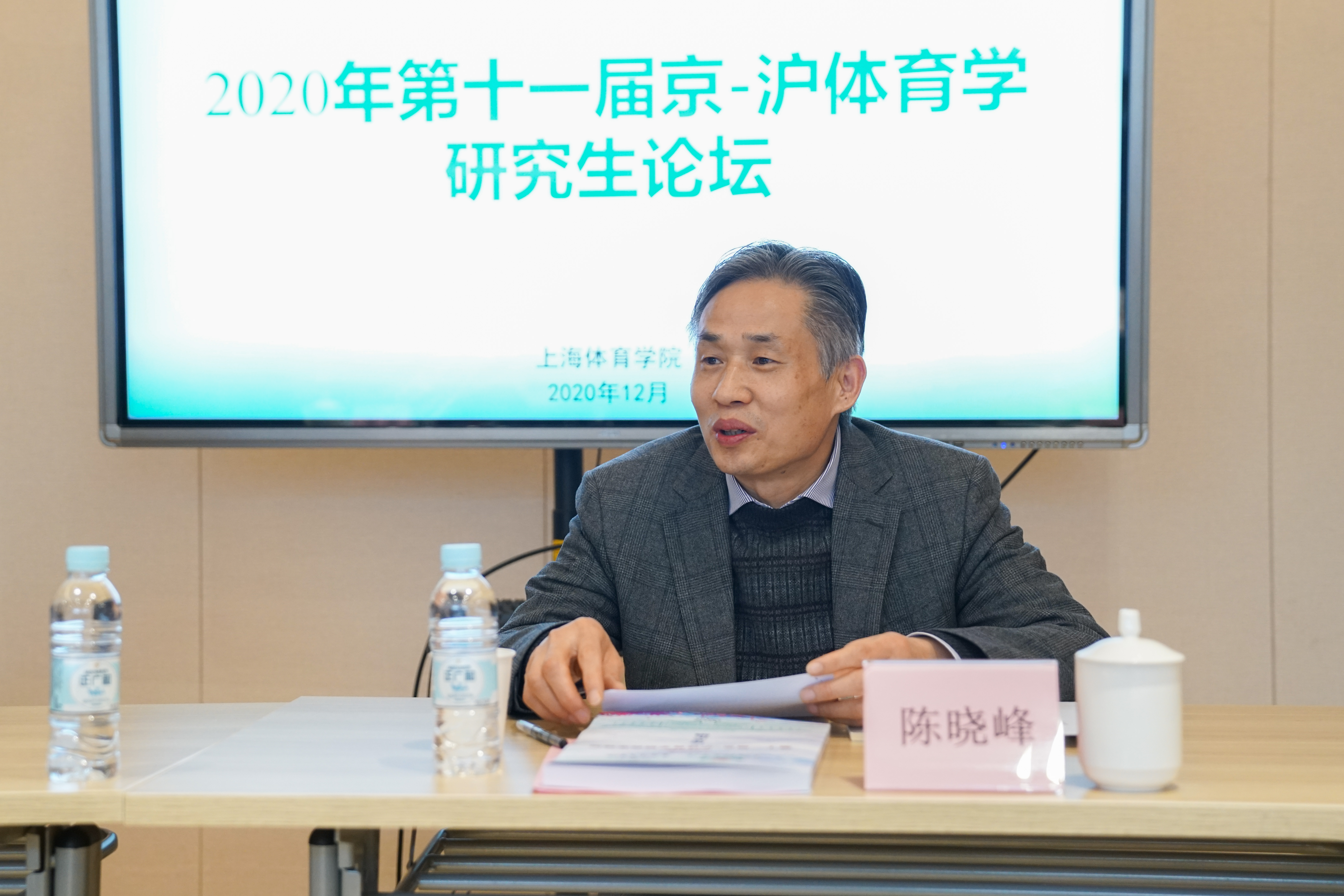 陈晓峰在开幕式上致欢迎辞,他表示“京-沪”体育学研究生交流活动已走过十余载,而今年又是我国研究生教育发展史上极不平凡的一年,习近平总书记在全国研究生教育大会上指出,中国特色社会主义发展进入新时代,即将在决胜全面建成小康社会、决战脱贫攻坚的基础上迈向建设社会主义现代化国家新征程,党和国家事业发展迫切需要培养造就大批德才兼备的高层次人才。作为体育类高校,我们要深入学习贯彻党和国家对研究生教育发展的重大部署要求,推进研究生教育培养改革,立德树人,提高研究生培养质量。他希望借助此次交流的契机,两校研究生培养部门能开展深入的研讨,互通有无、互相启发。