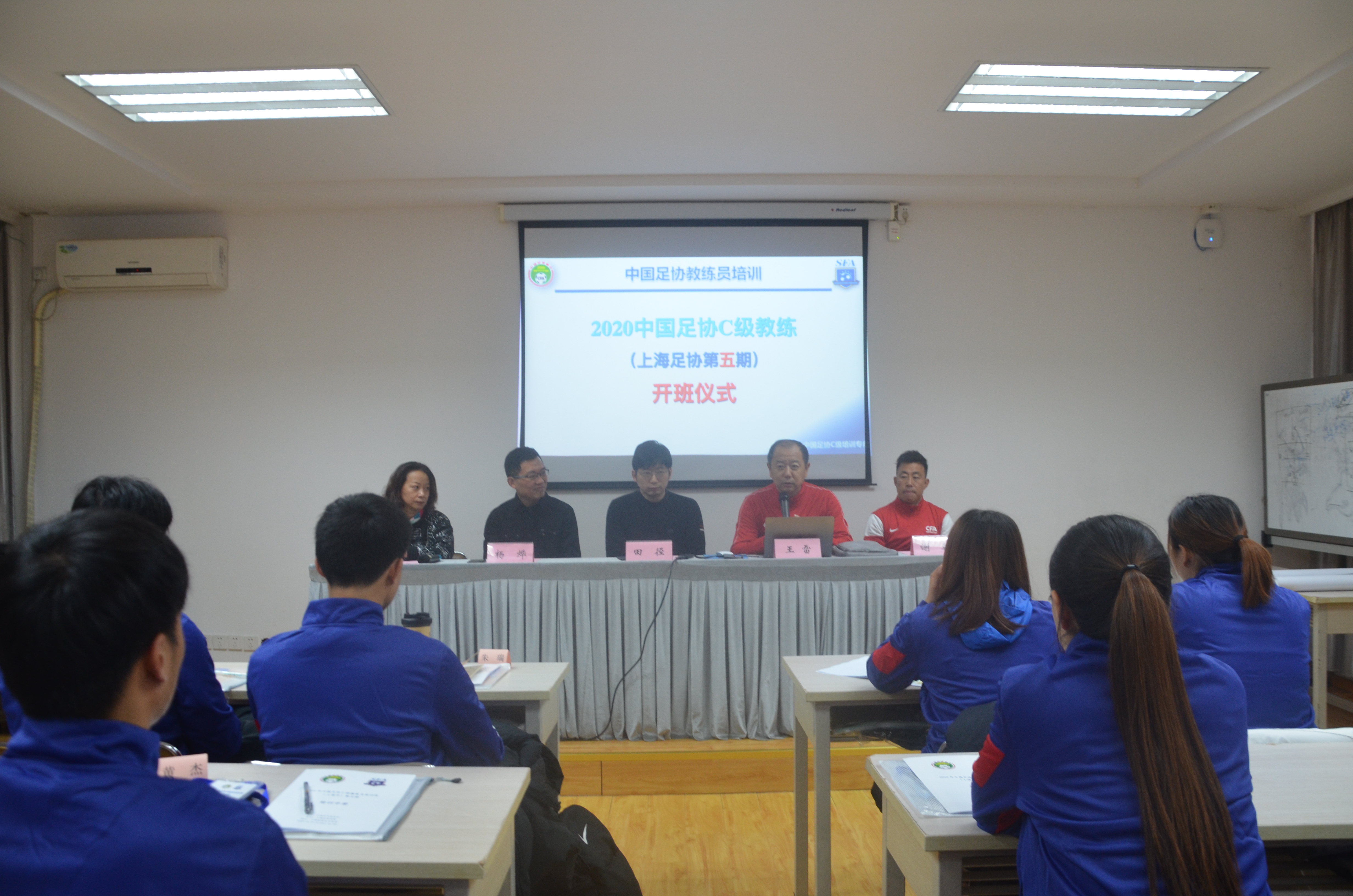 本网讯 12月27日上午,“中国足协C级教练员培训班(上海市)第五期培训班”开班仪式在我校举行,上海市足协会员发展部部长田径,亚足联/中国足协B级讲师王雷,中国足协D级讲师谢韩,上海体育学院继续教育学院副院长杨烨等相关领导参加了开班仪式。