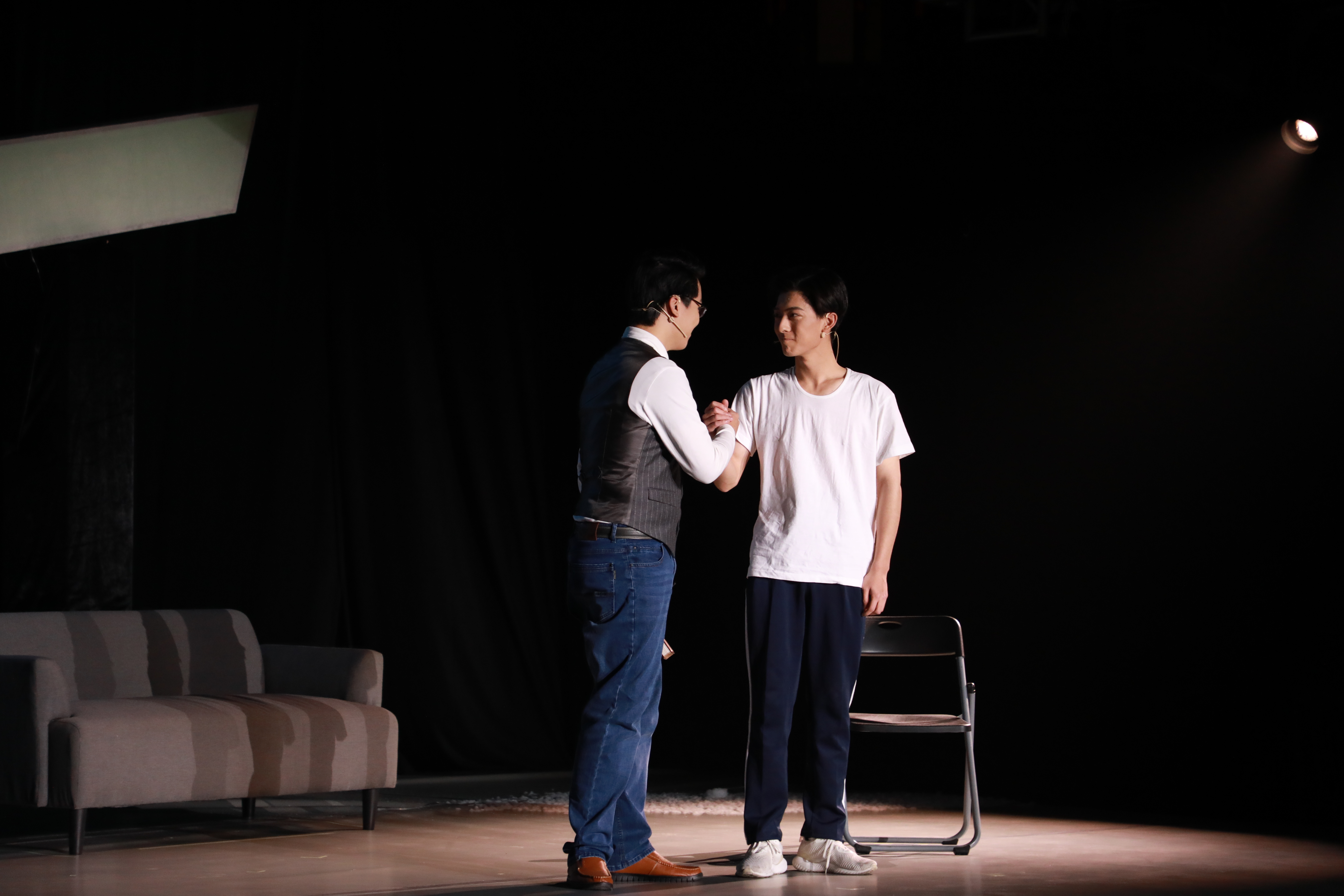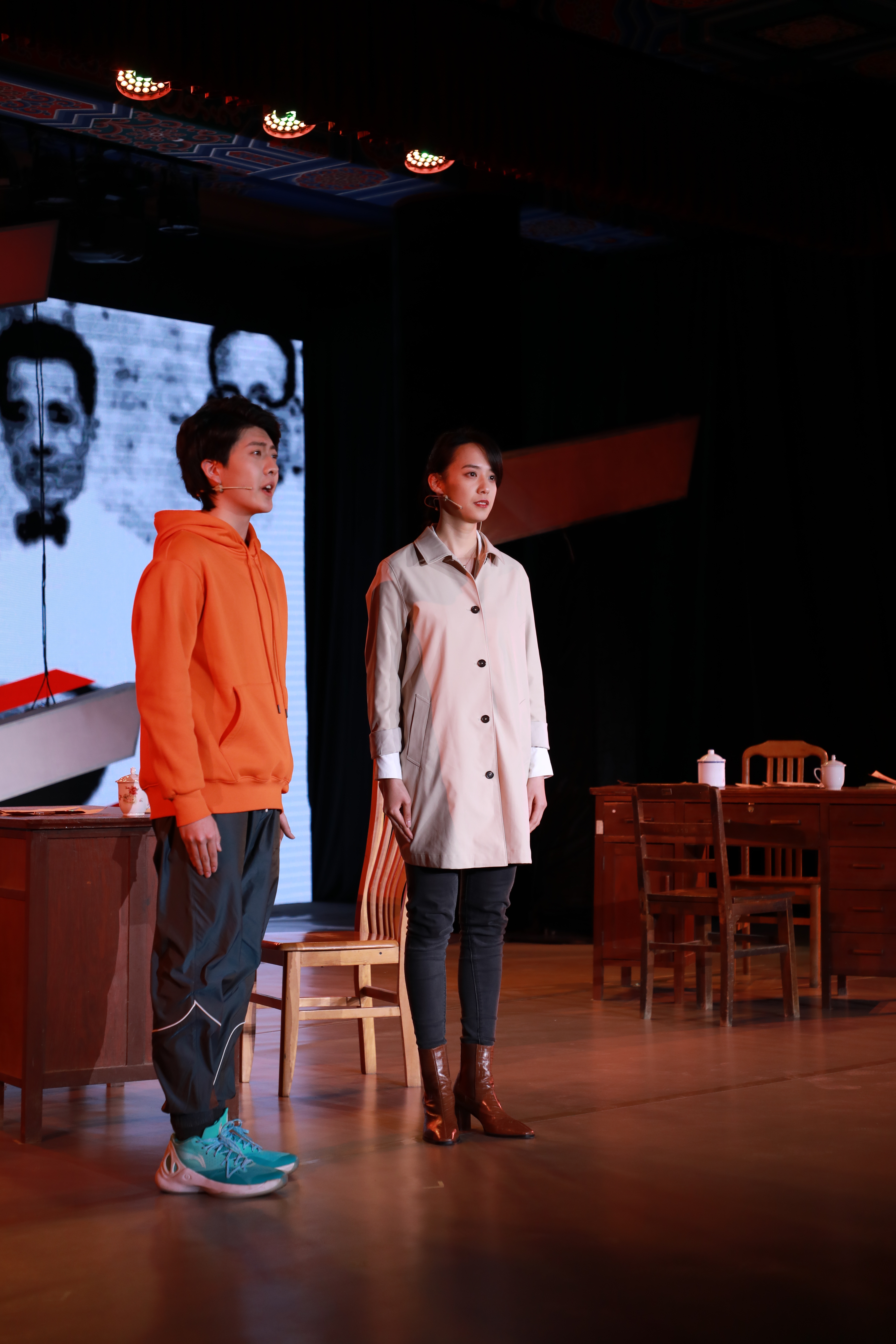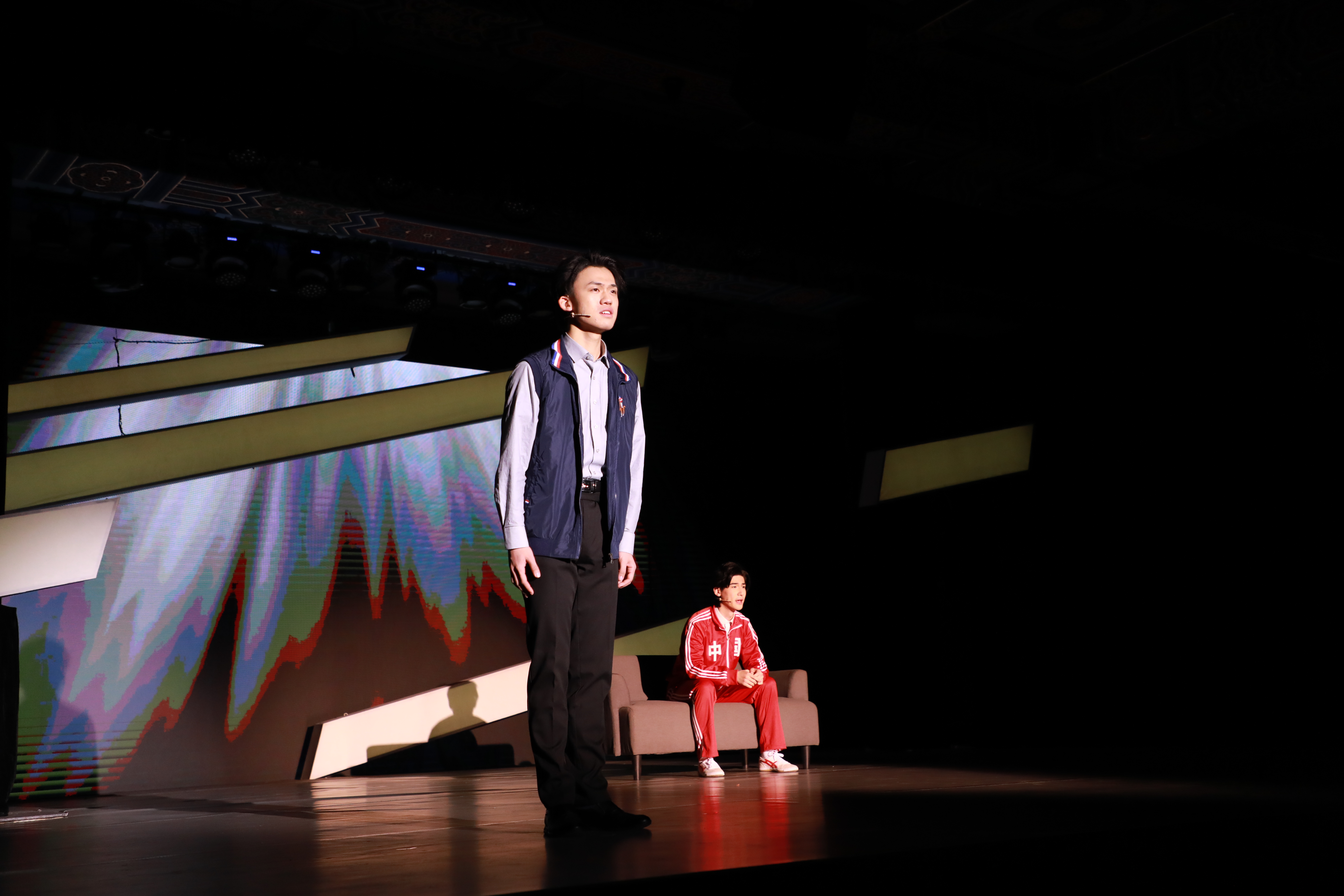 情景话剧以“五星·五环·五情”的主题演讲为线索,在同学张攀与辅导员的交谈中精彩呈现了五个不同的体育故事,而这五个故事也是中国体育史上的重要节点。