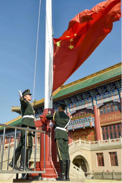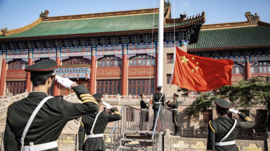 当绿瓦广场前响起了熟悉的《义勇军进行曲》,伴随着仪仗队铿锵有力的步伐,五星红旗冉冉升起,参与仪式的老师同学们行注目礼。他们带着对新年美好的憧憬,祝福学校新年新气象,愿祖国新的一年更加繁荣昌盛!