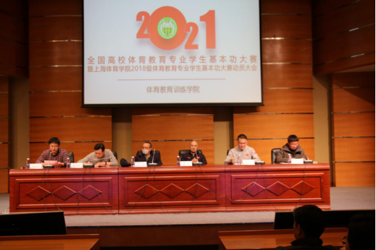 本网讯3月17日,体育教育训练学院于图文信息楼报告厅召开了2021年全国高校体育教育专业学生基本功大赛暨上海体育学院2018级体育教育专业学生基本功大赛动员大会。教务处处长邵斌、训竞处处长邵春、体训学院党委书记徐烈、党委副书记、院长高炳宏,副院长蔡玉军和体训学院各教学团队、指导教师代表、2018级体育教育专业全体本科生参加了大会。会议由体训学院党委副书记、副院长曹智超主持。