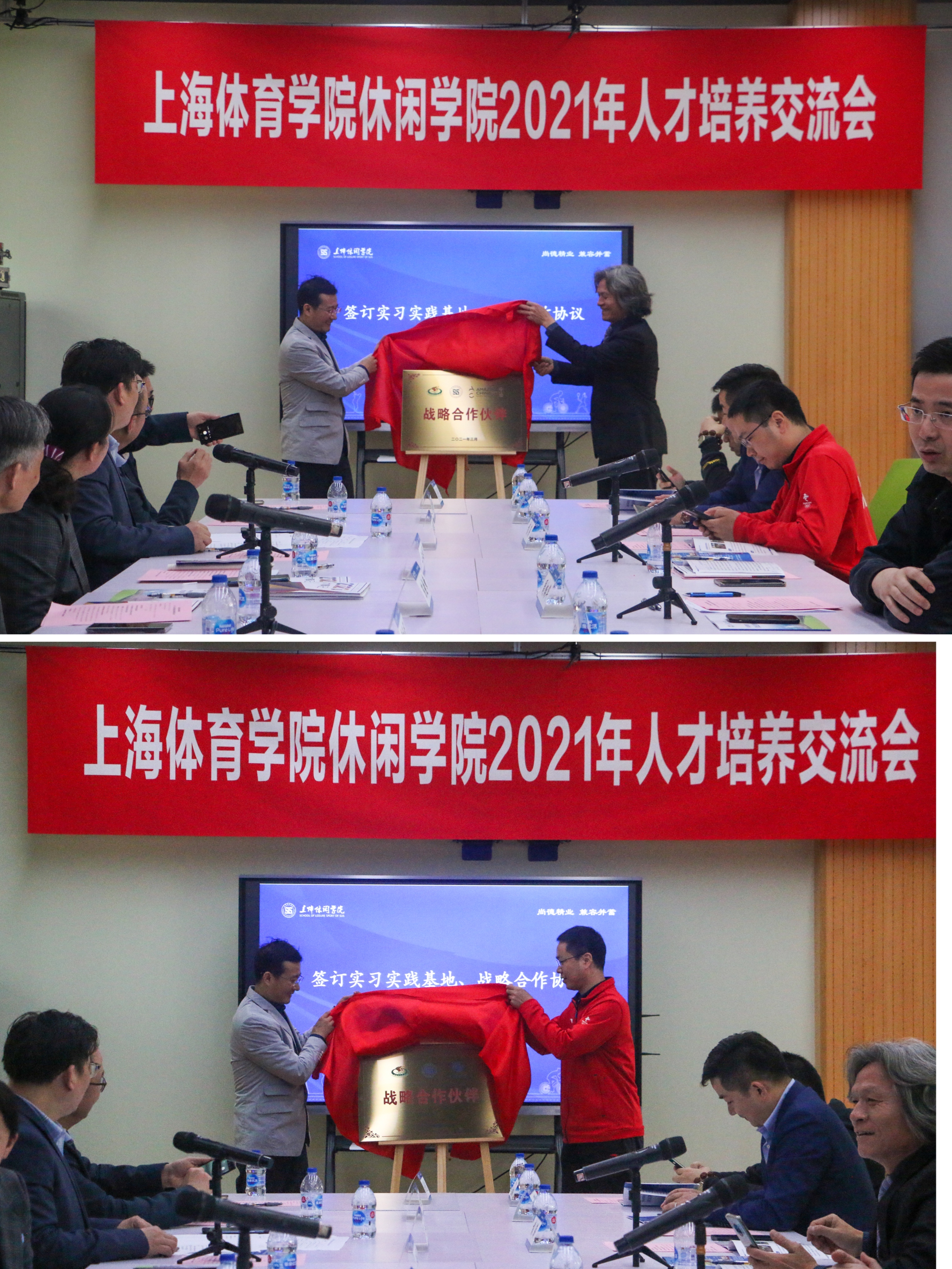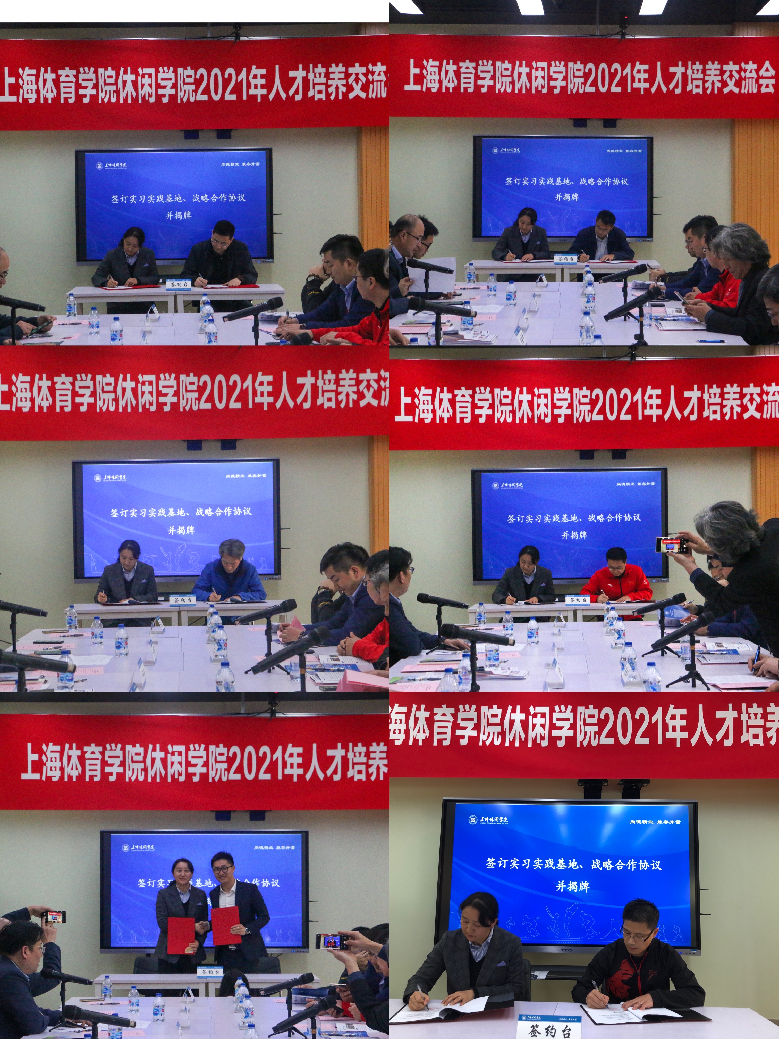 休闲学院院长王红英分别与上海市体育总会秘书处、万航旅业(上海)有限公司、上海市青少年体育协会、中讯邮电咨询设计院有限公司智慧体育研究院、上海英士博体育管理有限公司、北京中迹体育管理有限公司、上海翔立方文化体育集团有限公司签订实习实践基地、战略合作协议。