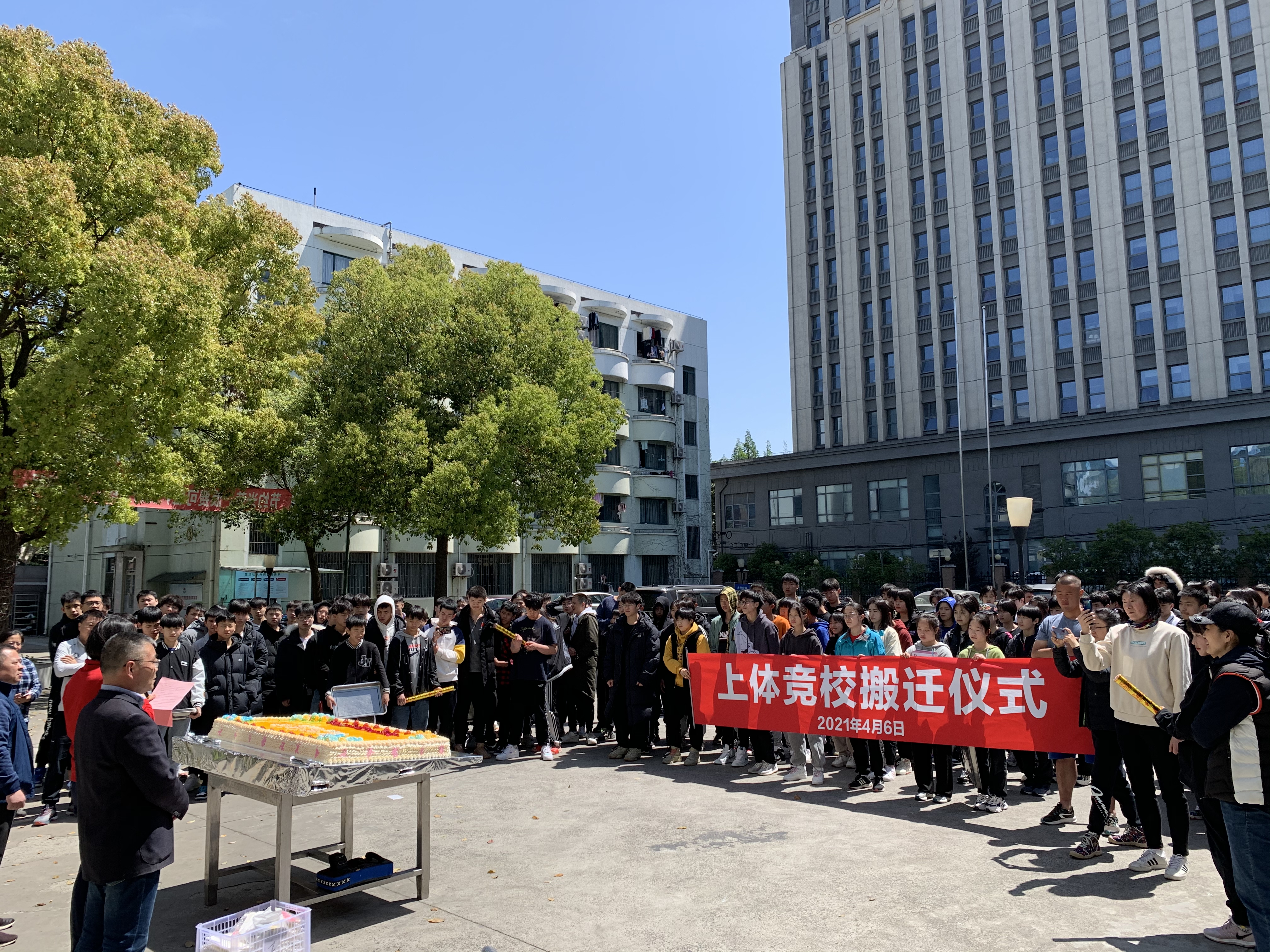 本网讯 2021年4月6日,这是一个值得纪念的日子。随着清晨从清源环路650号发出的第一辆搬运车辆徐徐驶入百色路1333号,迎着醒目的“热烈欢迎附属竞技体育学校入驻徐汇校区”的红色欢迎牌,附属竞技体育学校搬迁徐汇新校区工作正式启动。