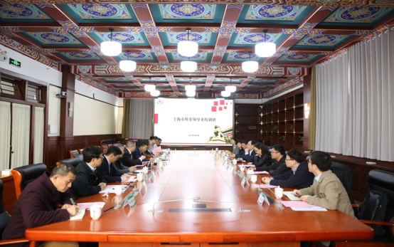 本网讯 4月6日,上海市科学技术委员会副主任朱启高带队到我校调研并座谈科技工作情况。市科委综合发展处、生物医药处、基础研究处、科普工作处、战略规划处负责同志参会。学校党委书记李崟出席并主持座谈会,副院长唐炎、原副院长王兴放一同出席。