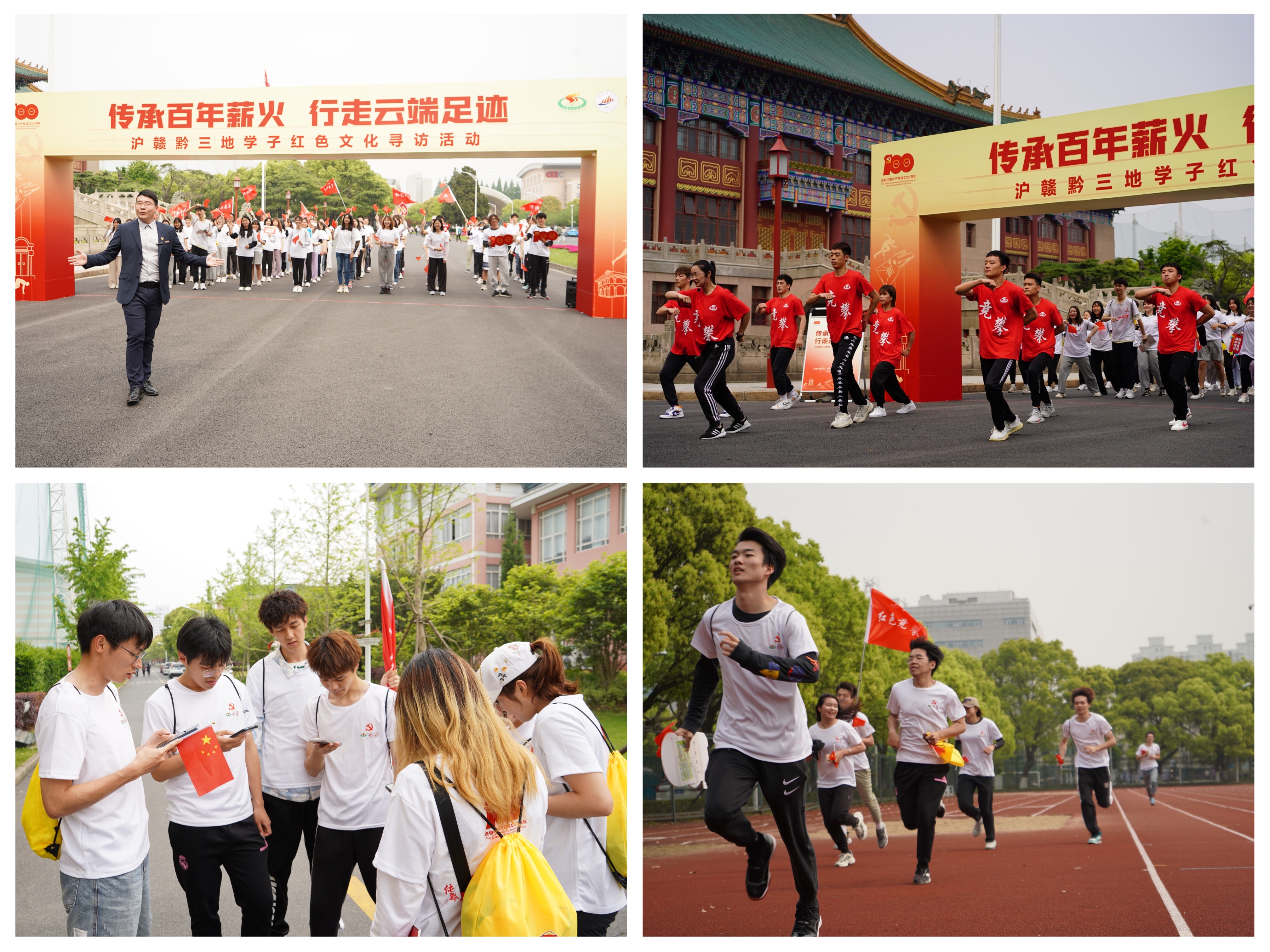 本次活动通过创新的实践参与形式和沉浸式的场域化党史教育,切实地弘扬红色文化,上海体育学院、井冈山大学、遵义师范学院从渔阳里(团中央机关旧址)、井冈山精神展览馆、遵义师范学院红色百年广场以及三校校园内同步开启红色文化寻访活动。在相同的时间,跨越1000多公里的空间,带着共同的梦想,跨越百年青春,为建党百年跑出青春姿态。活动现场,上海体育学院党委副书记杨玲、井冈山大学党委常委、副校长刘利民、遵义师范学院党委副书记洪涛在线上出席活动并讲话,三地三校各有100名左右师生参与活动。活动由上海体育学院学(研)工部、武装部部长梅朵主持。
