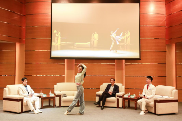 陈飞华首先和观众们分享了红色剧目的创编逻辑:一是将上海的人文精神贯穿艺术创作始终(《永不消逝的电波》人物与事件原型在上海),二是将英雄人物无形的精神世界用舞蹈形式外化为有形的表达。