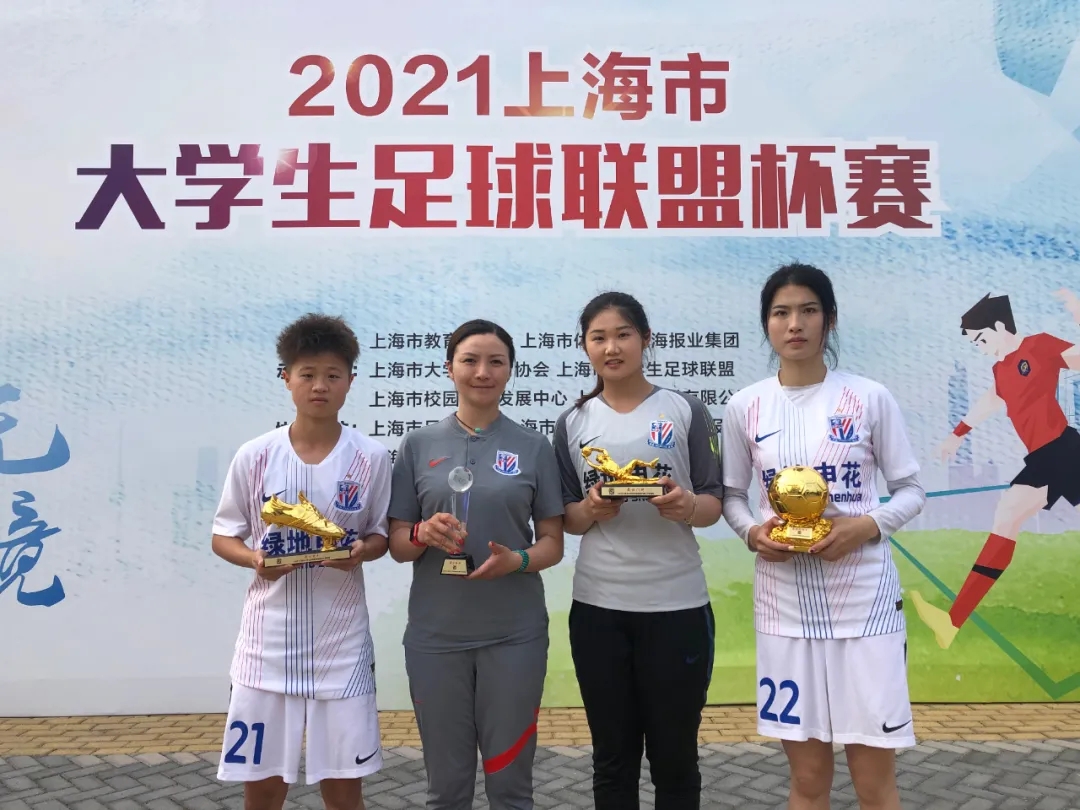 本网讯 5月21日下午, 2021上海市大学生足球联盟杯赛女子超级组比赛在上海市民体育公园落下帷幕,申花上体女足以四战全胜,打入18球仅丢1球的战绩获得冠军。申花上体女足主帅叶志竞获得赛事最佳主教练,队员王霞获得最佳球员,队员刘云颐攻入5球收获最佳射手,队员郑洁获得最佳门将。