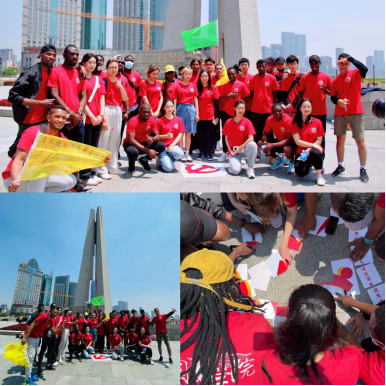 红色之旅的第一站是人民英雄纪念塔。在上海最具盛名的外滩边,同学们驻足凝望高高的纪念塔,缅怀英雄,向着为了现今和平美好生活而砥砺前行英勇牺牲的革命英烈们致以崇高的敬意。为了加深同学们、尤其是国际学生们对中国共产党的认识,带队老师请同学们一起合作完成一幅国际共产主义徽章的拼图。国际学生在中国同学的帮助下合作完成了拼图,并激动地要求在纪念塔下与拼接完成的徽章合影。
