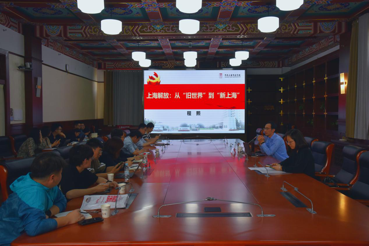 5月24日下午,北大毕业博士、上海市委党校副教授、北京大学政治发展与政府管理研究所研究员程熙受邀来校作“解放上海:从“旧世界”到新上海”党史教育专题讲座暨上海体育学院第四十期竞攀微课。讲座在绿瓦大楼第四会议室举行,由学(研)工部部长、武装部部长梅朵主持。我校学生工作队伍及第三期“竞攀班”学员近60人聆听了本次讲座。