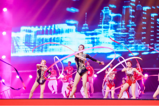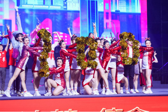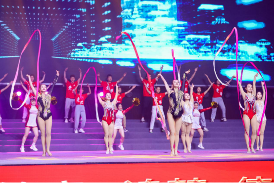 舞蹈节目组的表演《青春畅想》经过一个多月的打磨,在舞台上呈现出了飒爽的英姿和青春的气息。来自休闲学院的健身操团队(指导教师:陆丽萍、杨乔博)人数最多,整齐划一的动作,具有团队展示风采的整体呈现以及表演结束前的托举定格,都给观众留下了深刻的印象;来自体育教育训练学院的艺术体操团队(指导教师:陆颖娜)穿梭于表演中,通过圈、带、球、棒的艺术体操技术动作和演出舞蹈完美结合;来自我校星级社团“德艺啦啦操社”的姑娘们,带来了青春活力、激情四射的啦啦操表演,节目最后她们将手中金色的球花所组成的100字样,更是点题了歌会的主题“青春耀百年 永远跟党走”。