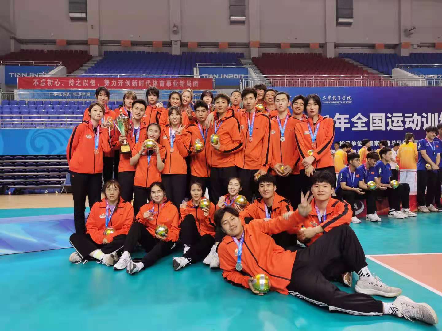 本网讯 5月23日至5月31日,2021年全国运动训练竞赛联盟排球联赛在天津体育学院举办,本届比赛由国家体育总局科教司、全国运动训练竞赛联盟联合举办,共有来自全国13所体育院校及综合性大学的21支男、女排球队参赛。在教练员张忠新、夏敏、丁海勇、项贤林的带领下,发扬竞攀精神,奋勇拼搏,男排获亚军、女排获季军。这是新冠疫情常态化下,全国运动竞赛联盟举办的首次全国体育院校“三大球”比赛。
