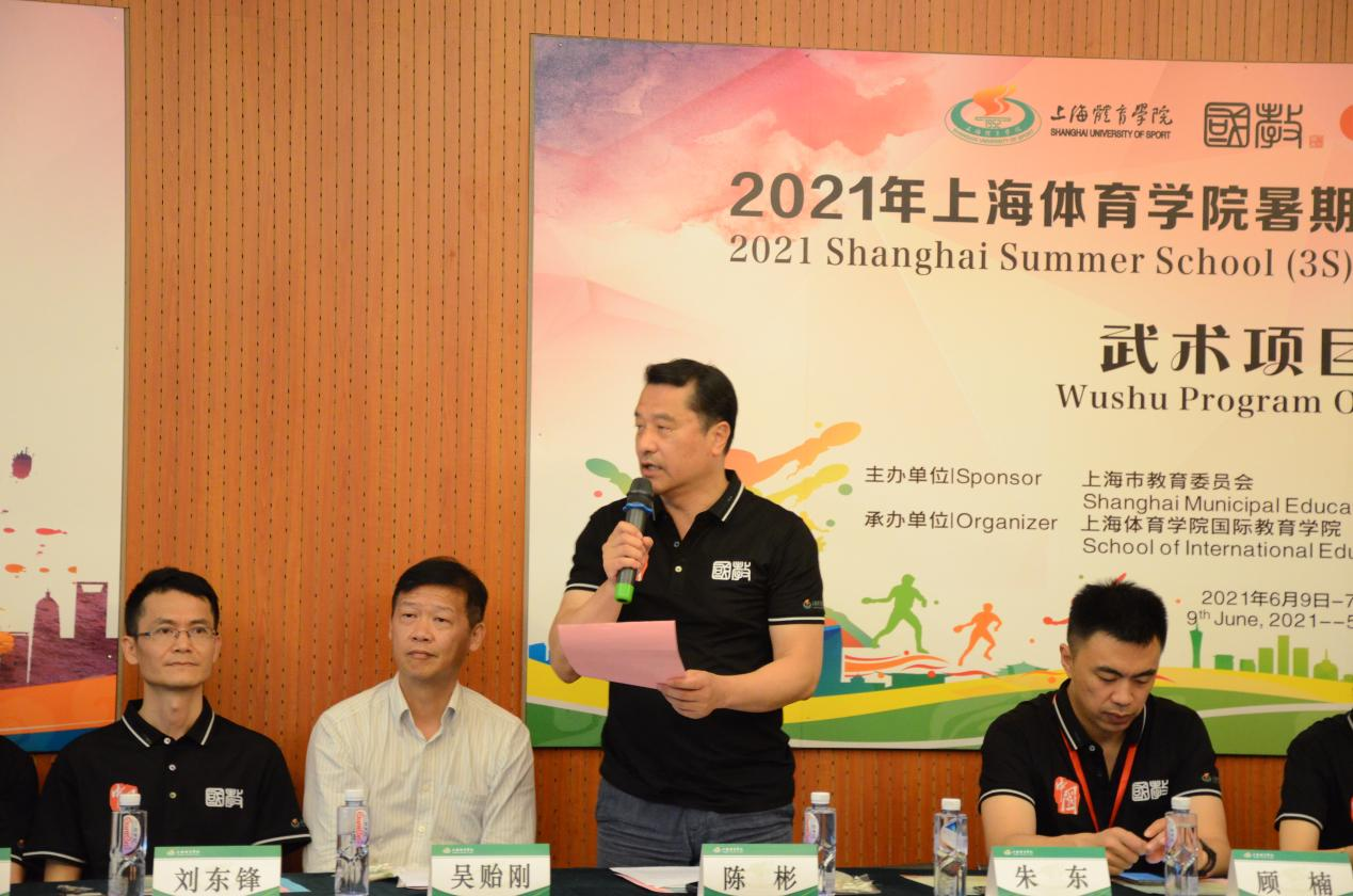 本网讯 6月9日下午,由上海市教委主办、上海体育学院国际教育学院承办的“2021年上海暑期学校(3S)武术、乒乓项目”开营典礼于我校老教学楼223会议室拉开帷幕。武术学院院长郭玉成,国教学院党总支书记刘东锋,国教学院院长吴贻刚、副院长朱东,中乒院副院长陈彬出席开幕式。来自20多个国家的海外学员通过ZOOM会议平台远程参加了开营典礼。留办负责人邹文华,项目负责人张森、徐文婷,任课教师以及志愿者团队一同参加了开幕式。开营典礼由朱东主持。