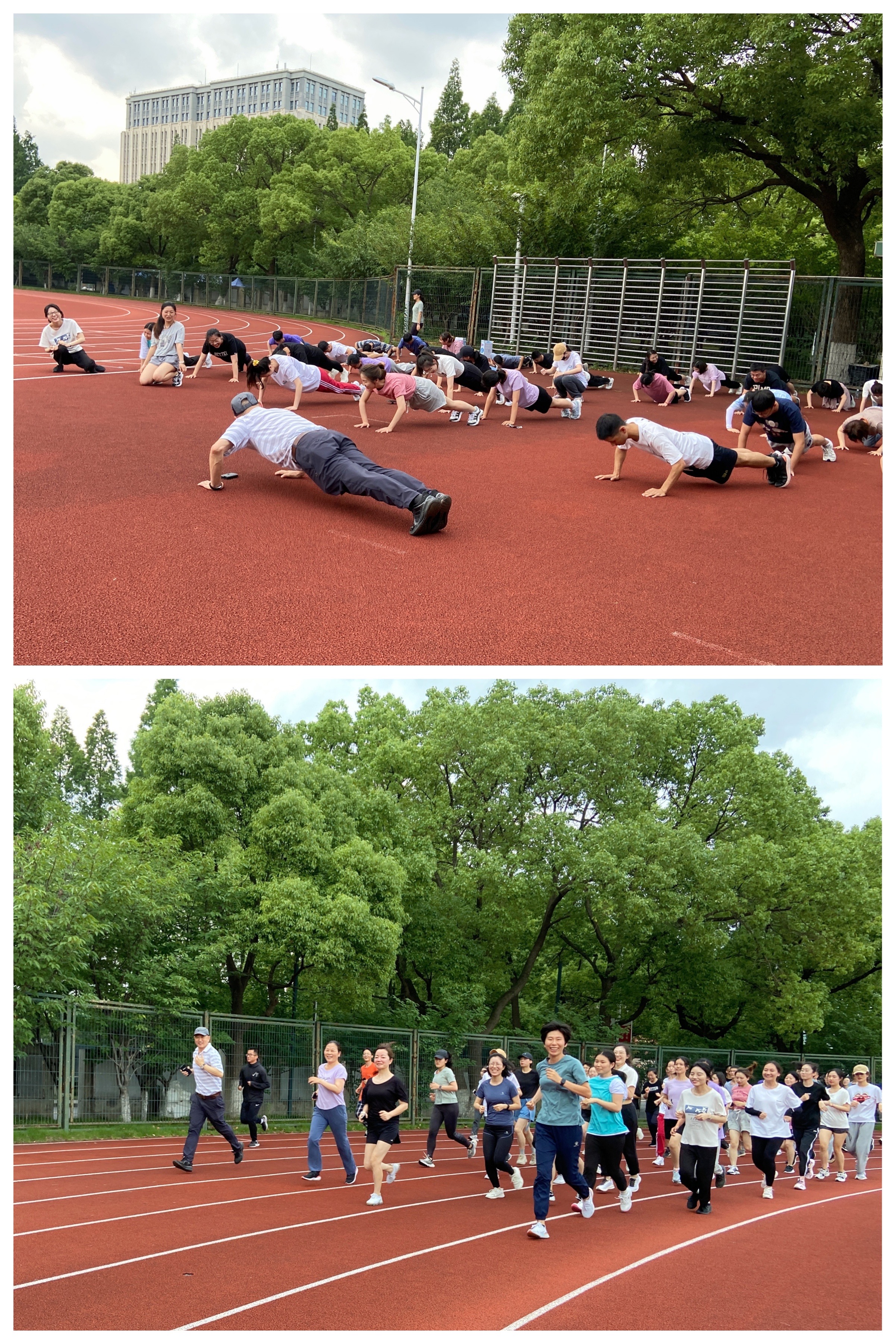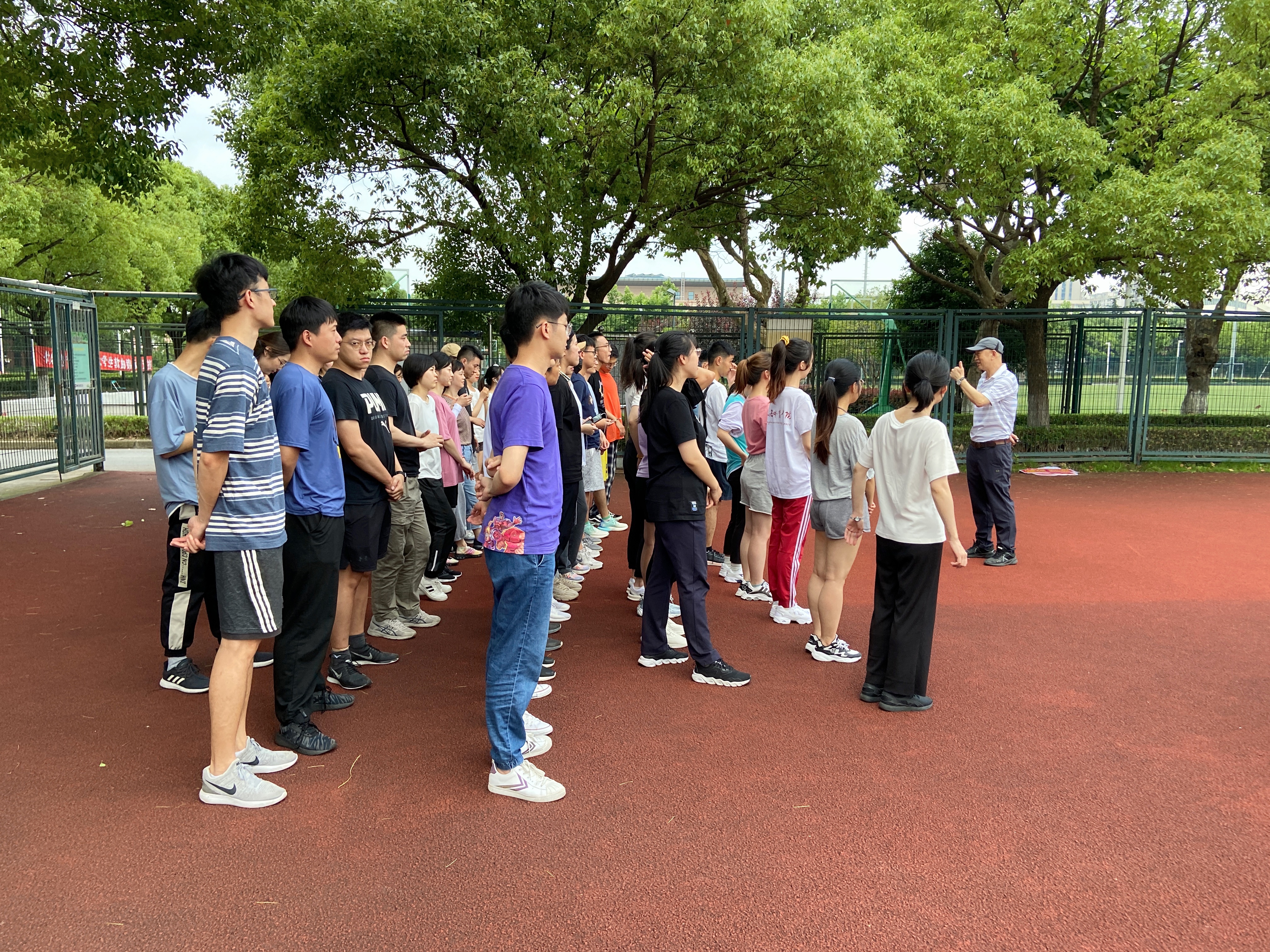 周成林教授与同学们一起热身,并激励同学们要坚持运动,以强健的体魄绽放青春,迎接一切挑战。