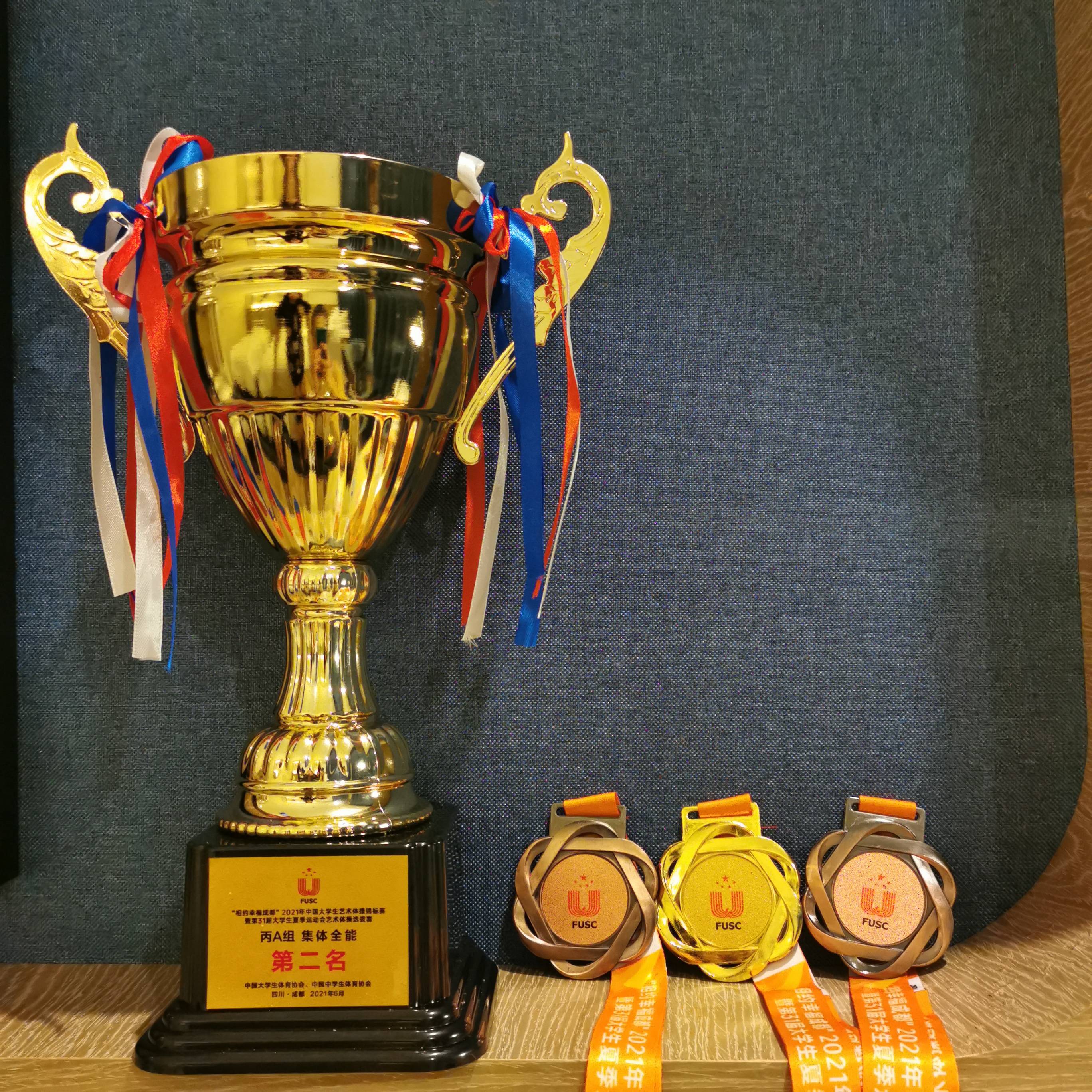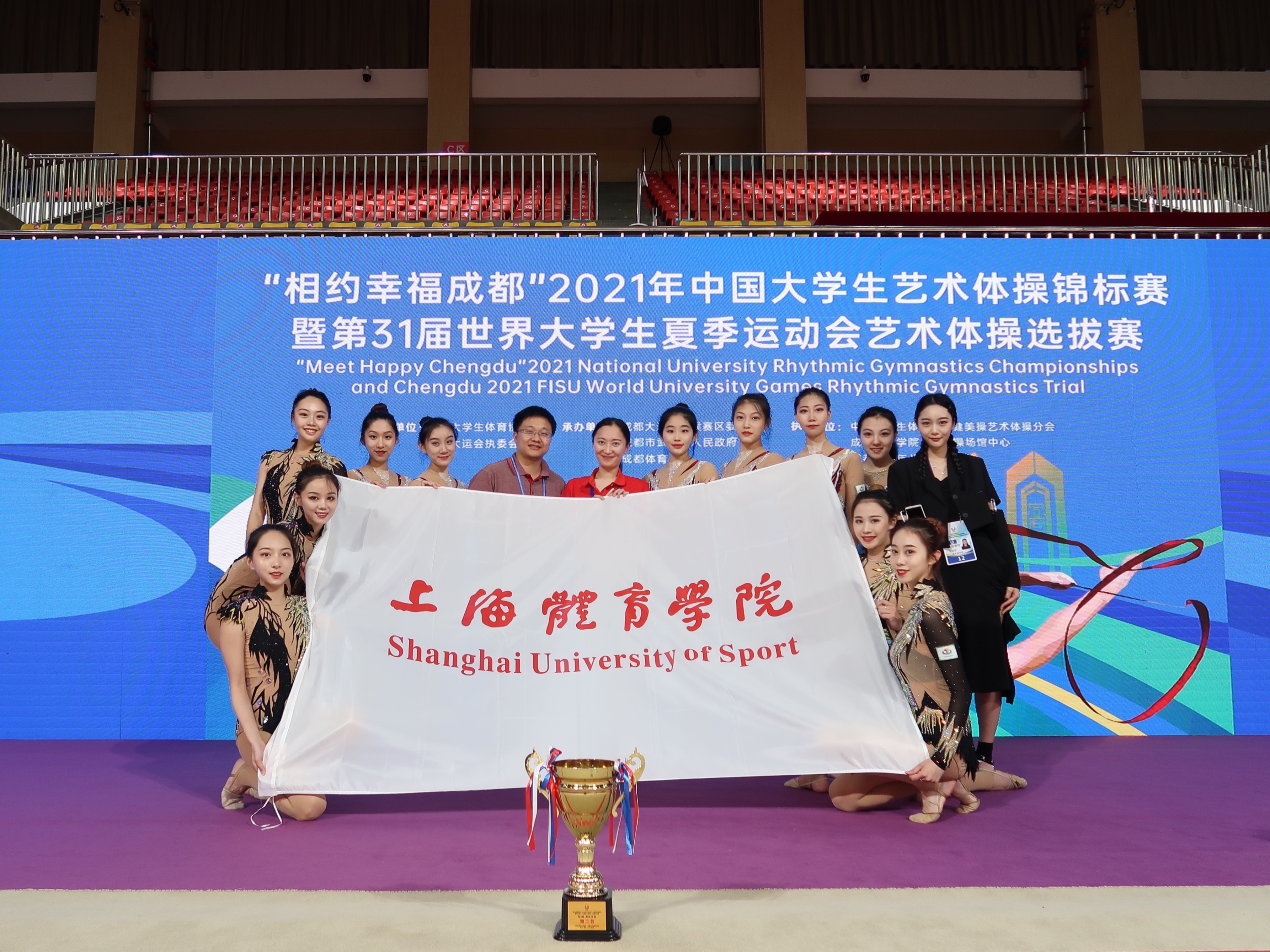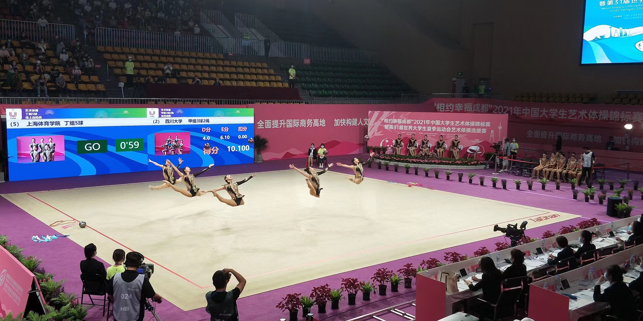 本网讯 6月6日至6月11日,“相约幸福成都”2021年中国大学生艺术体操锦标赛暨第31届世界大学生夏季运动会艺术体操选拔赛于成都体育学院如期举行。经过激烈角逐,我校艺术体操队在本次比赛中斩获三球两绳第一名、集体全能第二名、纱巾操第三名、艺术集体操第三名,共计1金、1银、2铜、3个第四名的优异成绩。