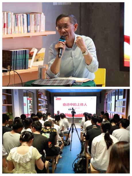6月16日下午,上海体育学院党史学习教育“传承”宣讲团成员章建成教授受邀在绿瓦书店明月堂,为我校2021年上半年党员、预备党员培训班学员讲授“奋进中的上体人”专题党课。