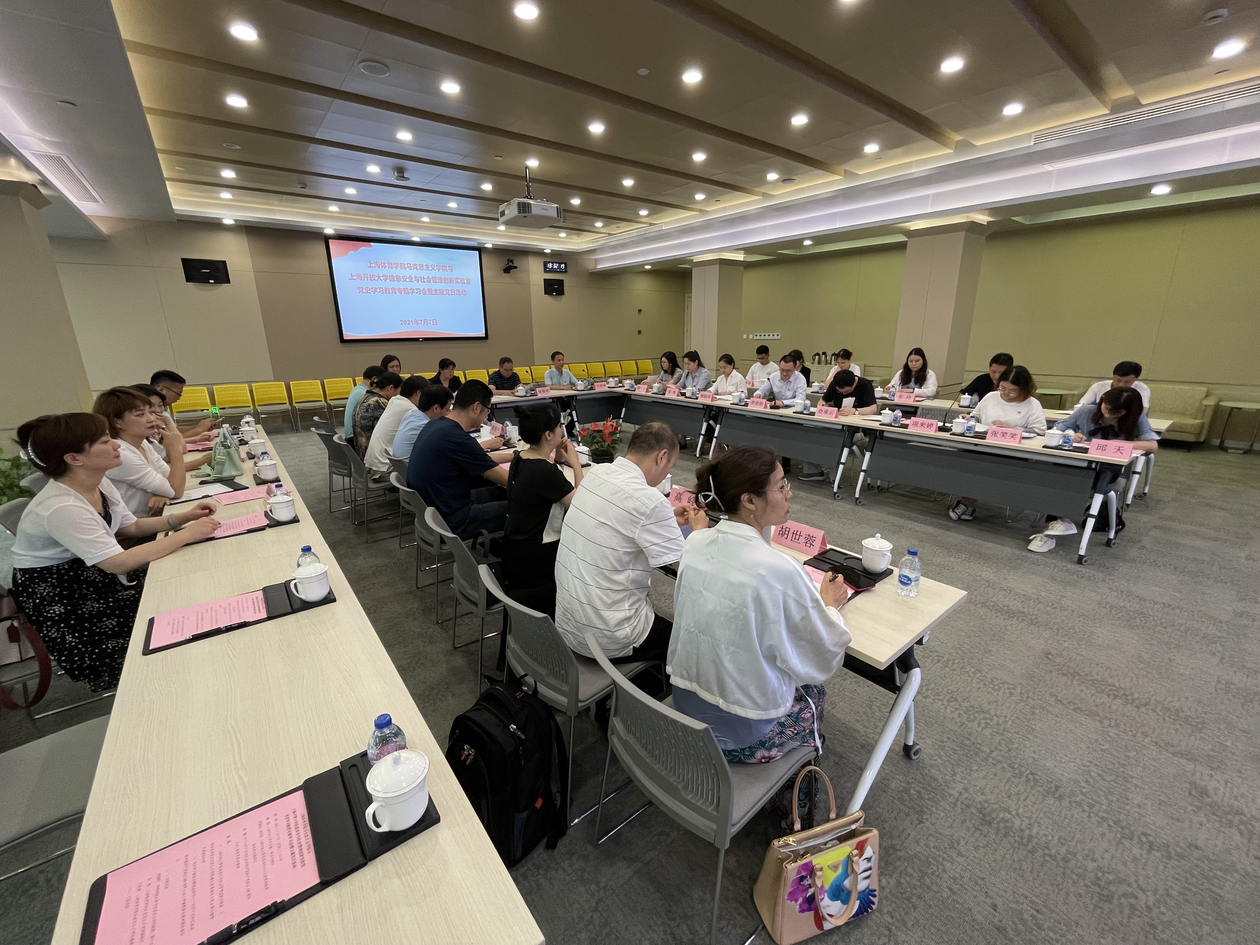 本网讯 为深入学习习近平总书记在庆祝中国共产党成立100周年大会上的重要讲话精神,推动党史学习教育不断走深走实,7月7日下午,上海体育学院马克思主义学院与上海开放大学信息安全与社会管理创新实验室在上海开放大学联合开展党史学习教育专题学习会暨主题党日活动,以“学习习近平总书记在庆祝中国共产党成立100周年大会上的重要讲话精神”为主题开展理论座谈。会议由创新实验室副主任侯劭勋主持。
