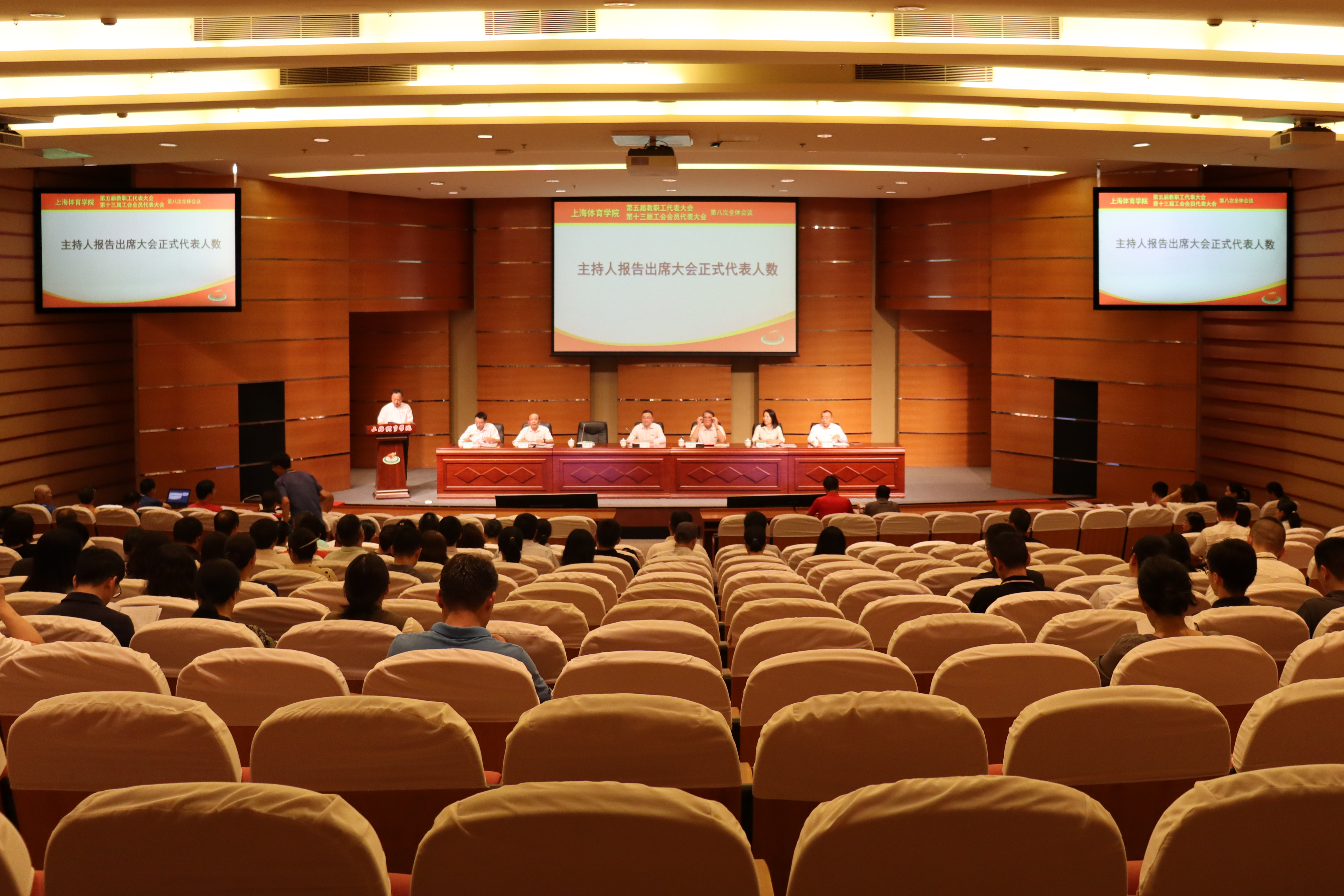 本网讯 7月9日,经学校党委和上海市教育工会批准同意,上海体育学院第五届教职工代表大会暨第十三届工会会员代表大会第八次全体会议在图文信息楼报告厅隆重举行。党委书记李崟出席会议并作讲话,党委副书记、院长陈佩杰,党委副书记、工会主席潘勤,党委副书记杨玲,党委副书记、纪委书记崔勇,党委副书记、副院长王继红,副院长唐炎出席会议。大会由潘勤主持。