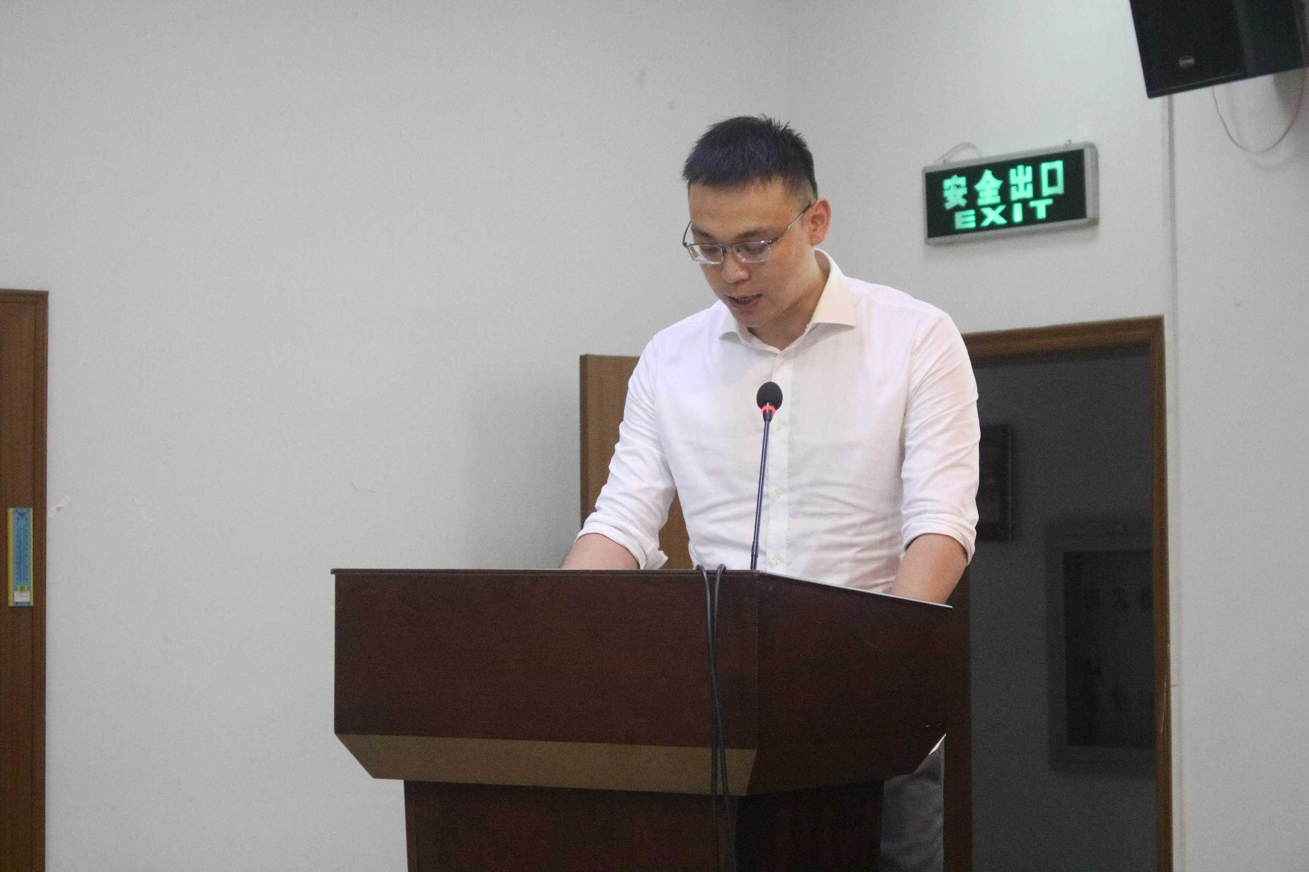 体训学院李斐老师作为导师代表发言。李老师提出,作为非全日制研究生,同学们有的带着繁重工作求学,有的已经离开校园多年,因此需要加倍拼搏,取得佳绩。他鼓励新生,要打好基础、积极主动地学习,及时做好研究规划,加强交流,多和老师、同学沟通,积极参与各项活动,预祝同学们勇攀科学高峰,收获知识和科研能力。