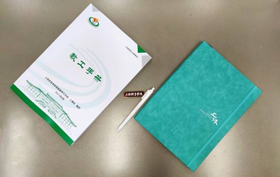 为帮助新入职教师尽快了解上体、融入上体、爱上上体,学校领导为新进教师佩戴校徽,发放《教工手册》和文创产品,在会议现场观看了学校宣传片。