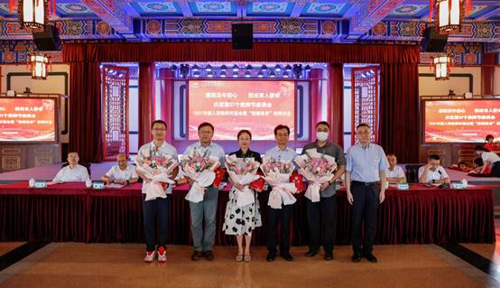 为学习贯彻习近平总书记“七一”重要讲话精神,弘扬伟大建党精神,教育引导广大教师切实担当为党育人、为国育才的光荣使命,学校大力弘扬尊师重教传统,做好宣传表彰,浓厚尊师氛围,全方位、立体式宣传立德树人先进事迹,弘扬主旋律,讲好师德故事,教育引导广大教师崇德修身、潜心教书育人。座谈会上为各级各类优秀教师颁奖献花,带动感召广大教师学习优秀教师典型事迹,学习热爱教育的情怀与坚守,争做大先生,做学生为学、为事、为人的示范。