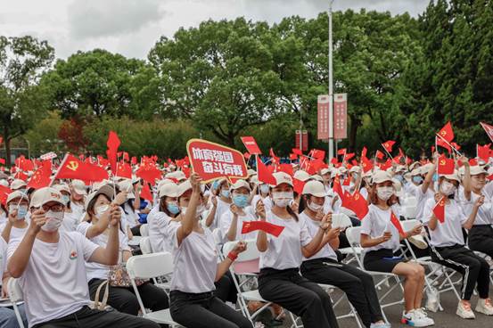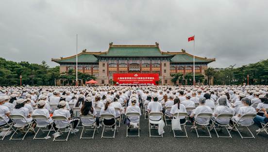 最后,师生同唱《没有共产党就没有新中国》,从歌声中汲取力量,坚定永远跟党走的信心。上海体育学院2021级新生开学典礼在壮丽的歌声中结束。
