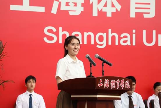2021级新生代表、传媒与艺术学院学生陶子小爱在发言中表示,“既然选择了远方,便只顾风雨兼程”,作为一名“新上体人”,应当坚定信念,肩负使命,共同遵循上体“身心一统、德技相长、文理兼修、服务社会”的办学思想,为上体,为祖国的发展贡献自己的力量!