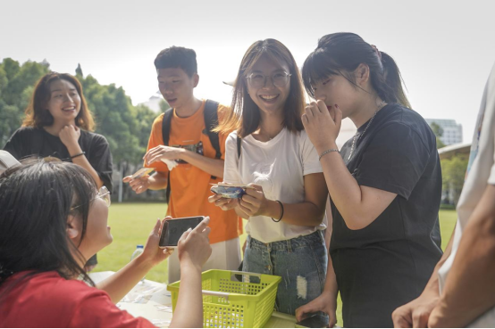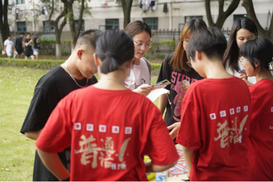 本网讯 2021年9月12日至18日是第24届全国推普周,本届全国推普周的主题为“普通话诵百年伟业 规范字写时代新篇”。9月29日-10月8日,我校举行了推普周系列活动系列活动。活动由教务处主办、国际教育学院承办。9月29日,本次系列活动的第一场活动——普通话推广宣传活动于宿舍区大草坪进行,为“推普”周系列活动拉开了序幕。该活动以“你的普通话‘普通’吗?”为主题展开,通过古诗词接龙、读绕口令和易错词发音等小游戏,加强与学生们的互动,在轻松愉快的氛围中让同学们更好地了解普通话,抓出以往生活之中易被忽视的错误,提升同学们对普通话的认知。在普通话推广小游戏中,绿瓦学子们都积极参与并乐在其中,来自五湖四海的伙伴们此刻齐聚萋萋草坪,眸中满溢的是欣喜之色,口中吐露的是字正腔圆的普通话,心中怀揣的更是一腔愈发浓厚的爱校、爱国情怀。