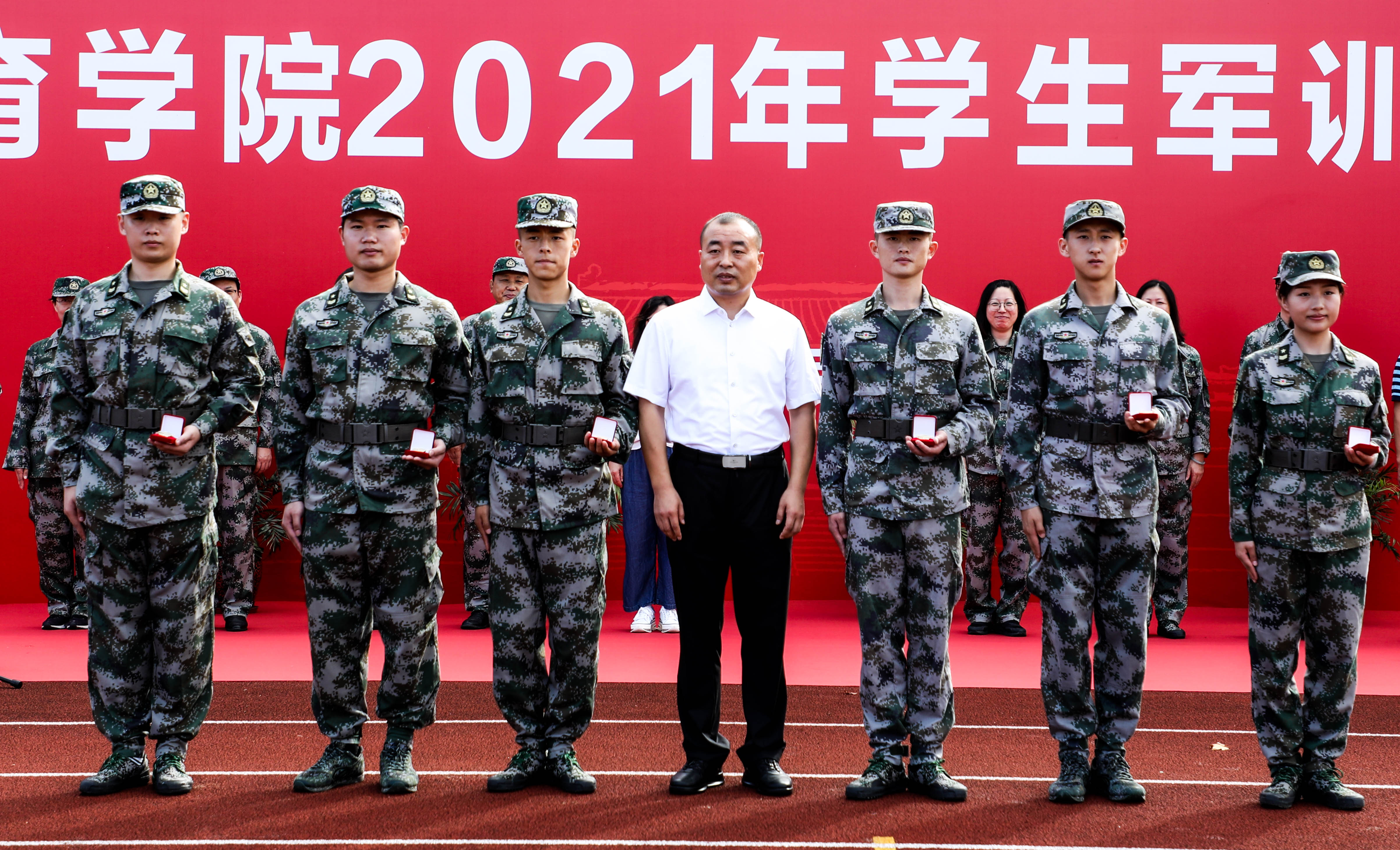 校党委副书记、副院长王继红出席仪式并颁发退伍纪念奖章。学(研)工部、武装部部长梅朵,团委书记、学(研)工部副部长陈鸿,后勤处副处长袁文君,中乒院、各二级学院分管学生工作领导、新生辅导员以及由我校退伍学生组成的军训团教官等共同参加仪式。仪式由学(研)工部、武装部副部长彭海峰主持。