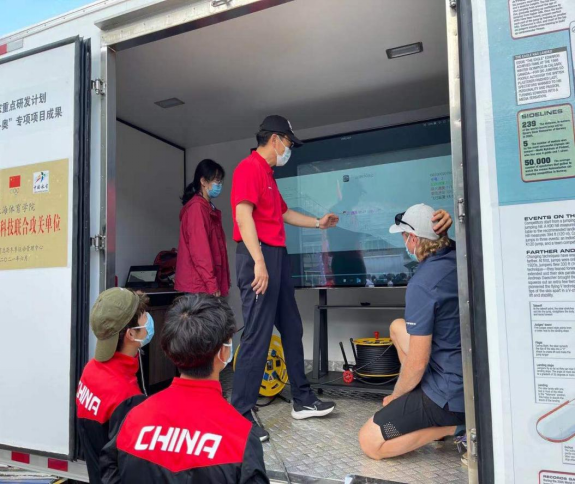项目团队成员现场和国家队主教练和运动员交流测试结果