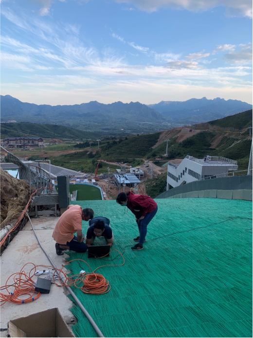 项目团队成员在河北涞源国家跳台滑雪科学训练基地现场向总局领导汇报雪上技巧类项目多模态生物力学快速反馈系统