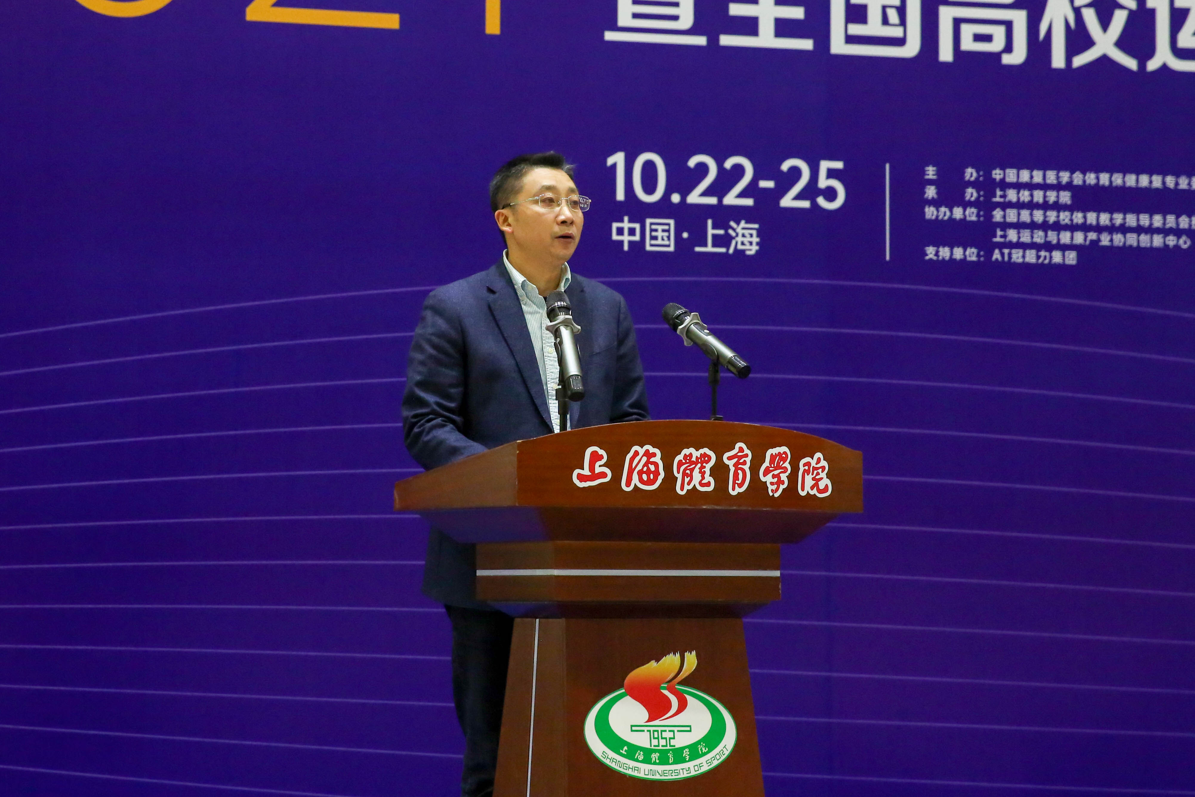 上海体育学院校长陈佩杰为本次大会致欢迎辞。他指出,近年来,党和国家把健康事业摆在了更加突出的位置,把“健康中国”纳入到了国家未来发展的战略布局当中,而运动康复必将为健康中国的建设发挥重要的作用;本次大会是展现人才培养成果、交流凝聚共识、推动运动康复专业高质量发展的难得契机,希望参会专家能够畅所欲言地分享智慧成果、收获创新灵感,也祝愿所有参赛师生选手展示出良好风采,在提升技能的同时收获友谊。