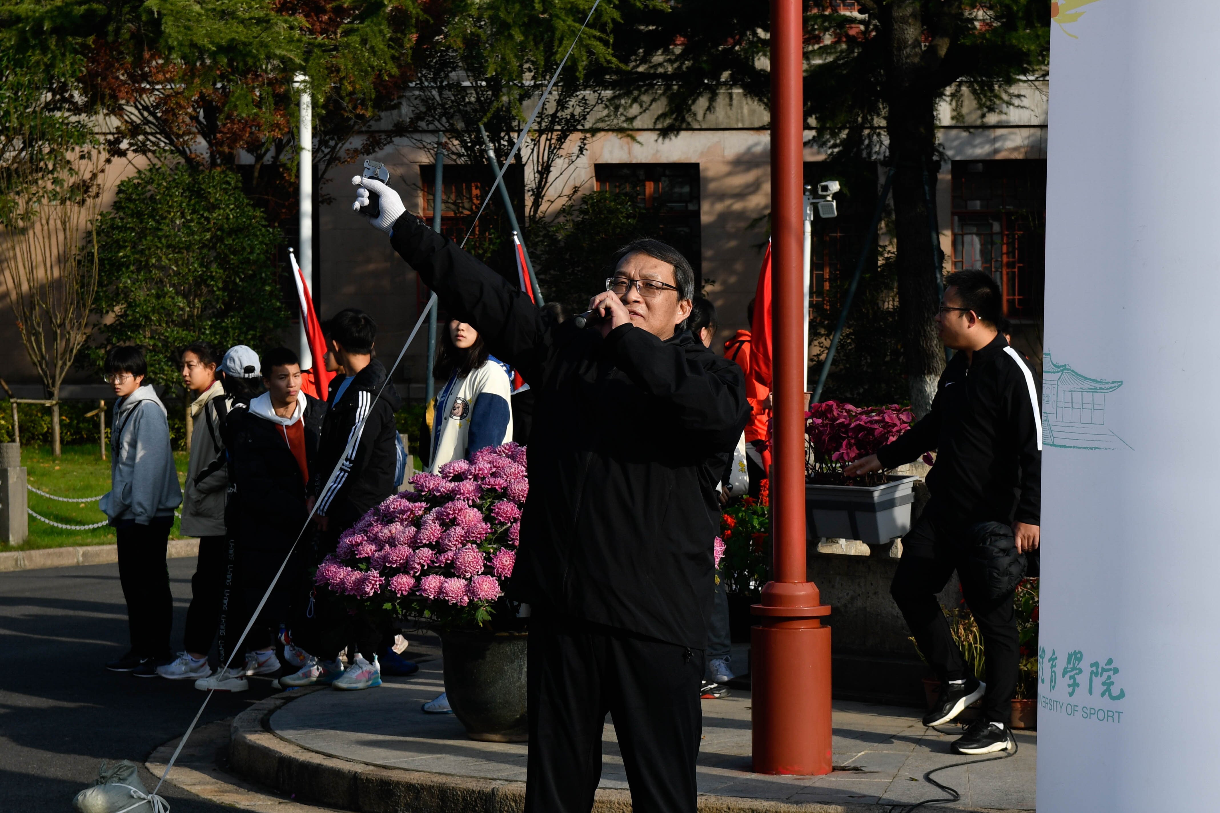 开幕式由训竞处处长邵春主持,我校仪仗队完成了升国旗、奏唱国歌仪式。党委书记李崟宣布2021年上海体育学院运动会开幕,院长陈佩杰为教职工健身长跑鸣枪发令,运动会田径比赛也随之正式拉开了序幕。本次田径比赛共设置甲组(高水平)、乙组(体育类)、阳光组和中学组四大组别。学生参赛人次共1994人,创历史新高。