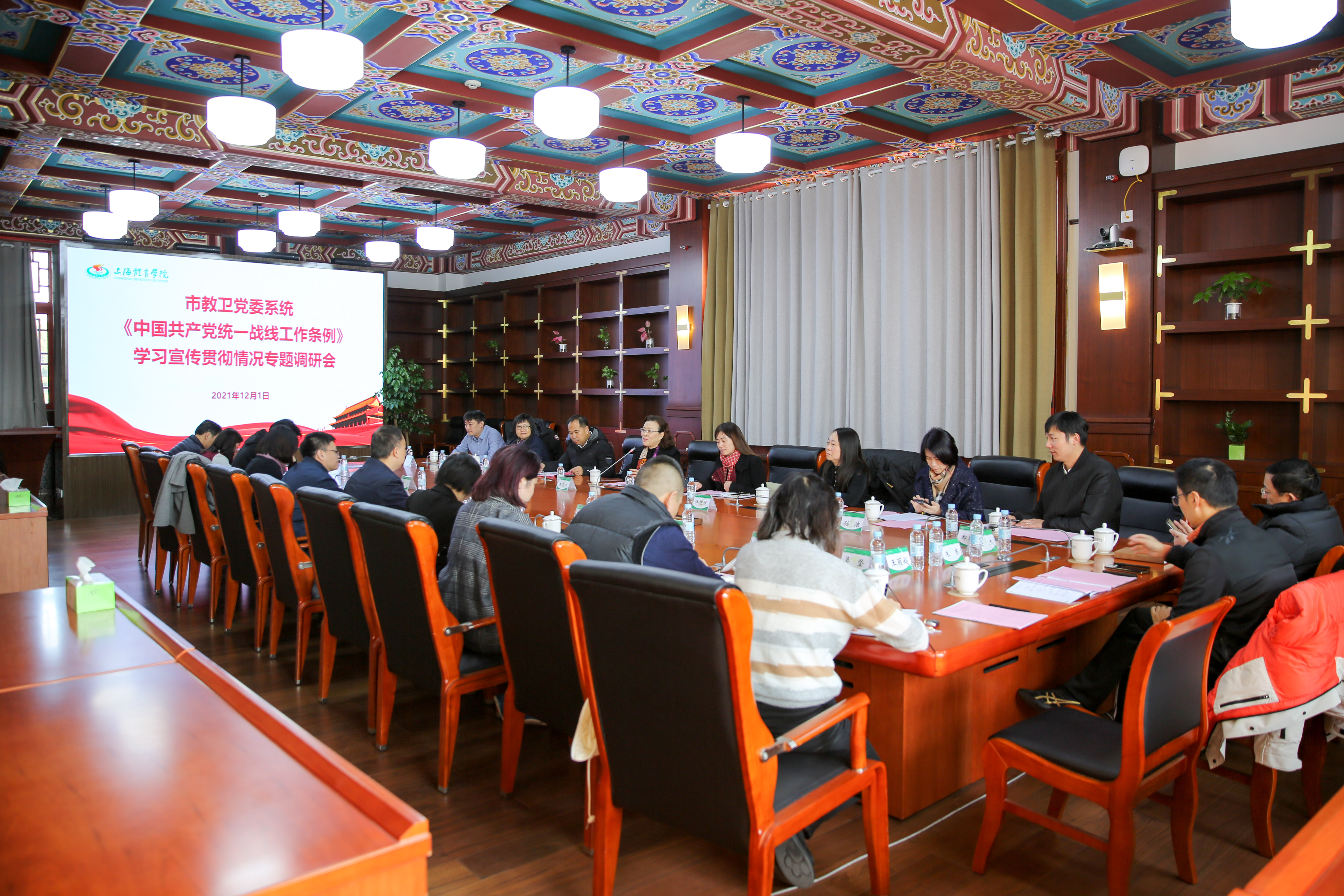 本网讯 12月1日上午,市教卫党委系统学习宣传贯彻《中国共产党统一战线工作条例》(以下简称《条例》)第二调研组在组长、东华大学党委副书记崔运花的率领下,来我校进行专题调研。校党委副书记、校长陈佩杰接待了调研组一行。校党委副书记潘勤,统战部、宣传部、教工部、学工部、人事处、国交处、保卫处等职能部门负责人及体训学院党委书记,民盟、民进、农工、九三等党派基层组织负责人,知联会会长等参加调研及座谈。