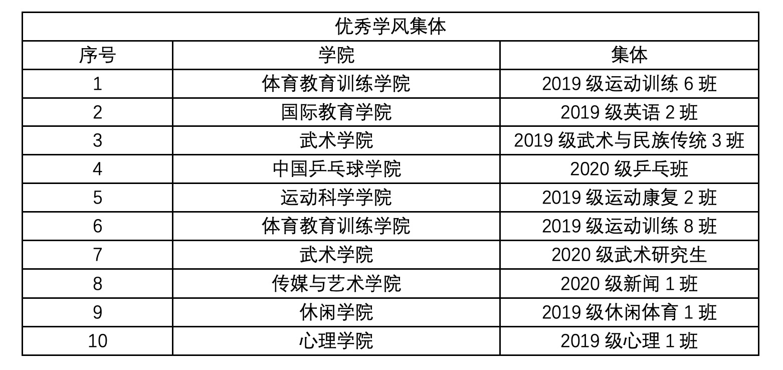 今后我校将继续严抓学风建设,将学风建设与思政教育紧密结合、与班风校风建设紧密结合,构建科学化、系统化、规范化的学风建设长效机制,落实立德树人根本任务,努力培养理想信念坚定、职业道德高尚、知识基础宽厚、核心能力突出、综合素质全面的创新拔尖体育人才。