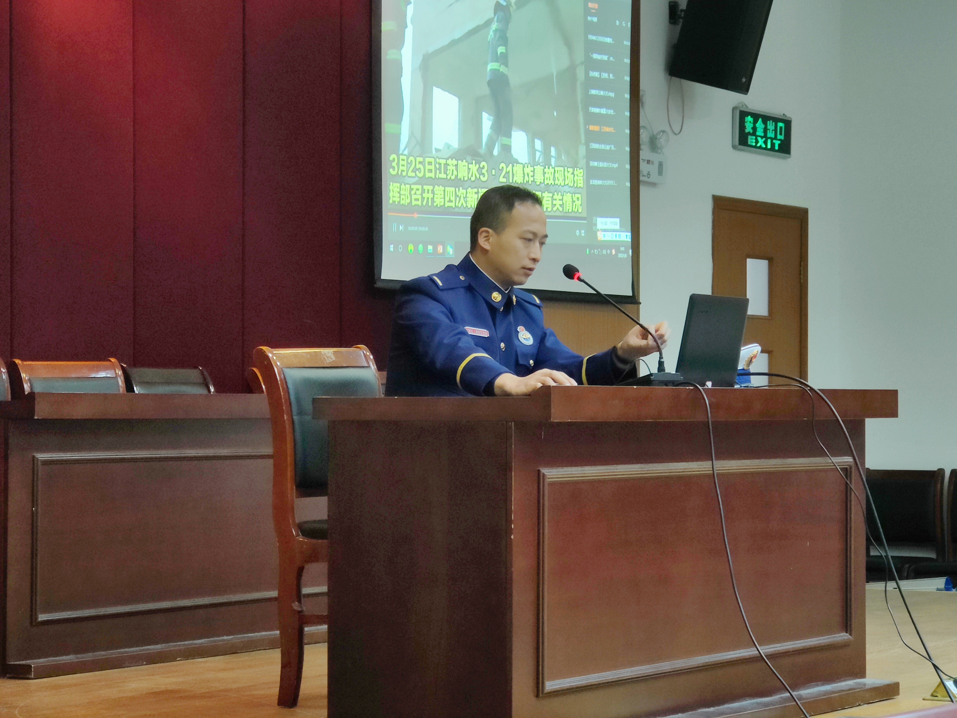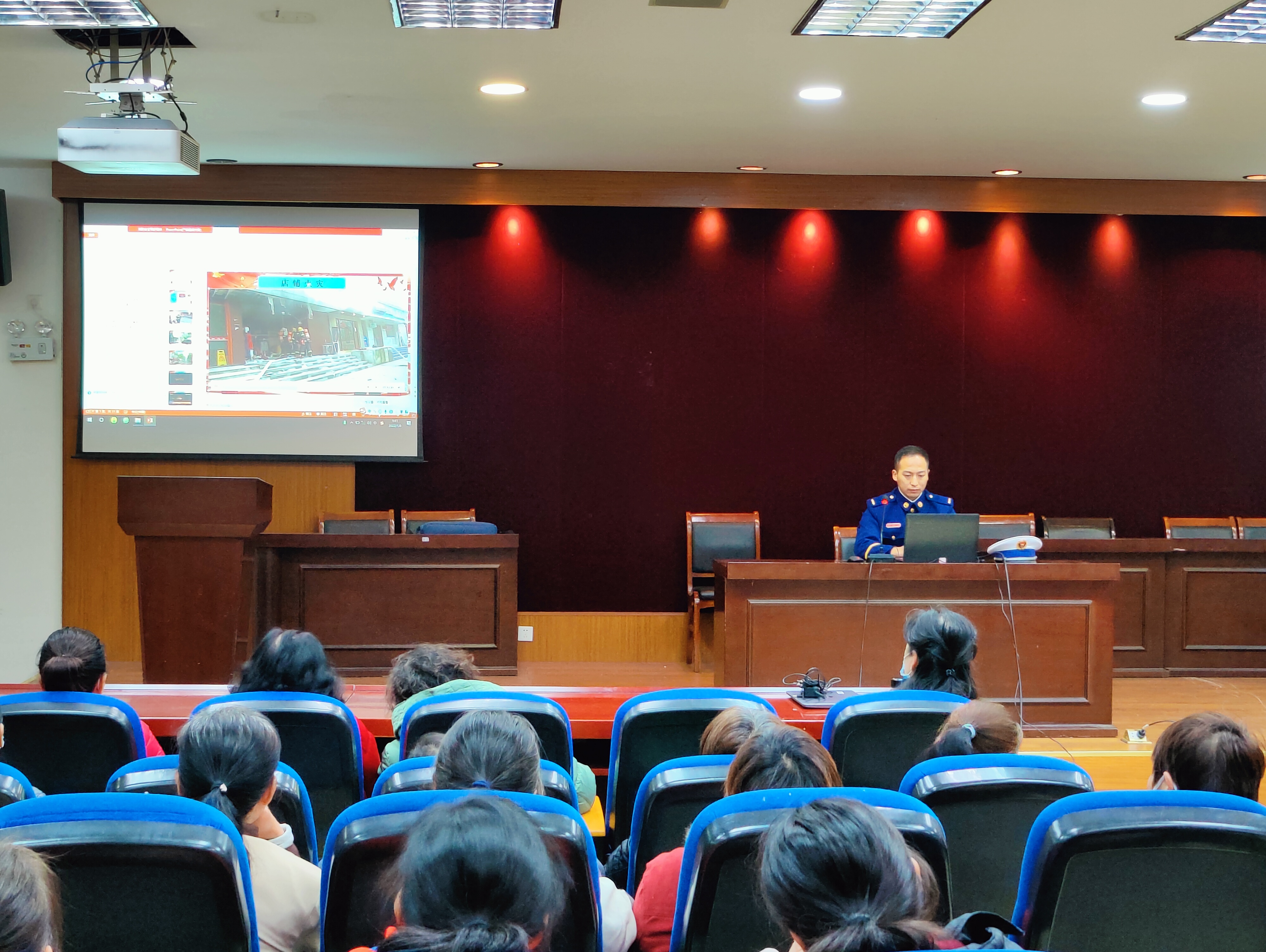 在演练前,杨浦区消防救援中心翔殷支队教导员在学生中心二楼报告厅为后勤处职工、各楼宇宿舍消防安全管理员结合寝室消防安全的情况,讲解了相关消防安全知识、灭火器材知识,以及寝室用电安全的消防安全宣讲。宣讲内容丰富,生动有趣,有图文结合的硬核消防知识让人学习,火灾事故现场的视频给参与人员留下了深刻印象,体会到火灾的严重后果,从而让我们更加重视火灾防范与消防安全知识的重要性。