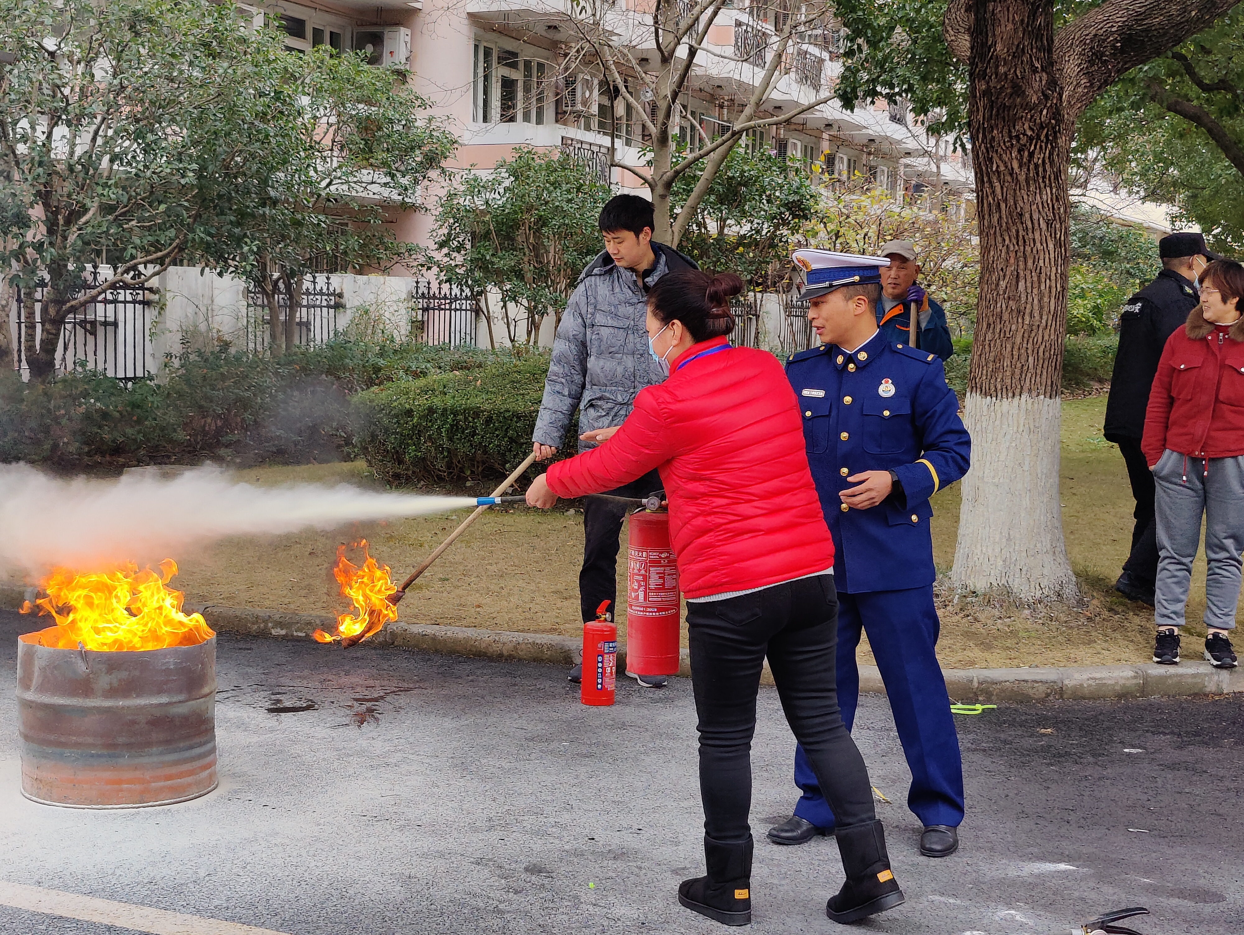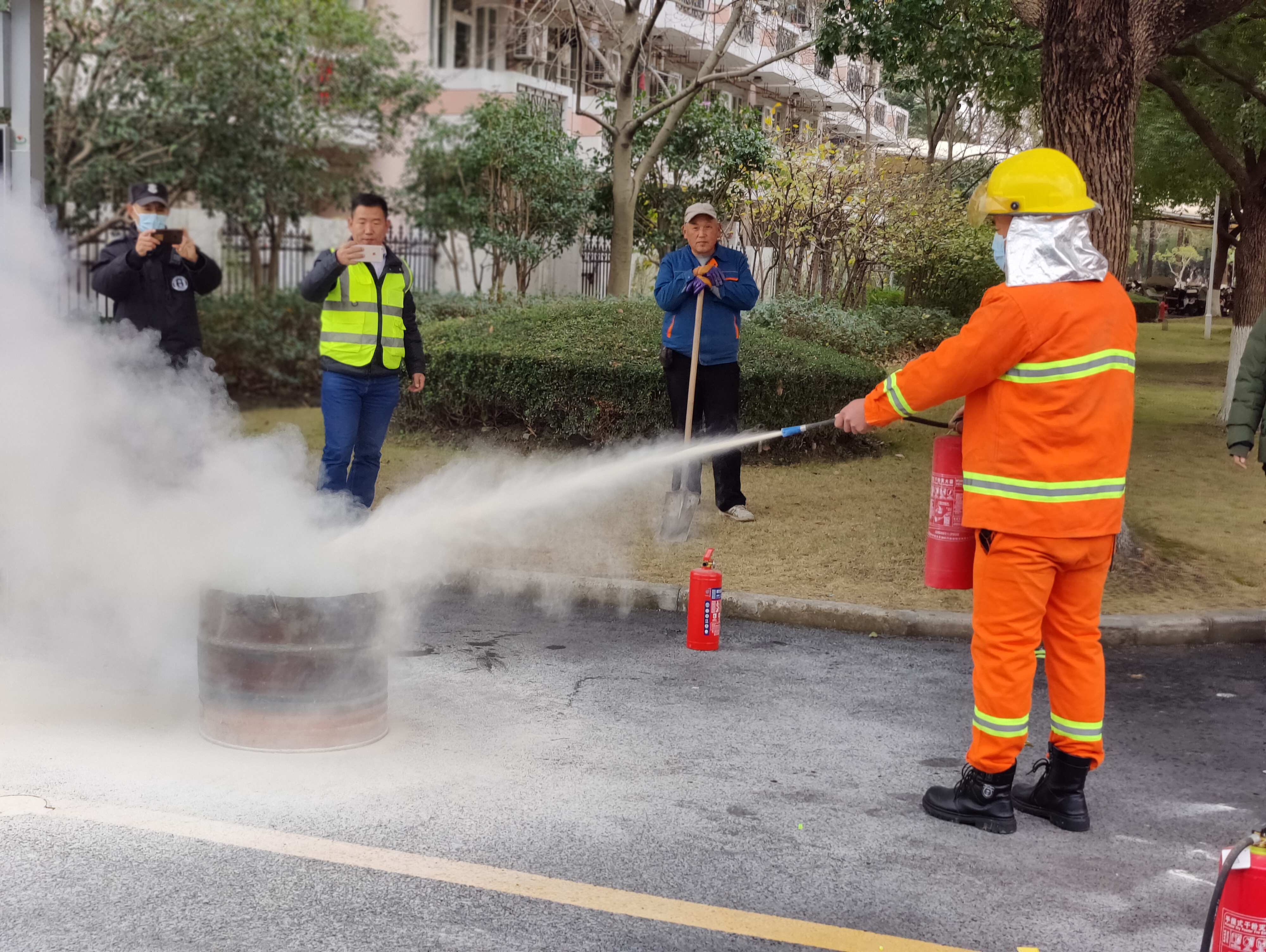 消防救援中心的教导员为各楼宇宿舍消防安全管理员讲解和展示了灭火器的正确使用方法,同时让宿舍管理员们体会灭火器的使用,并对其进行操作上的指导和纠正。学校微型消防站的辅导员也对学校的消防安全工作进行了指导工作并对学校消防维保单位做出了工作指示和工作目标。