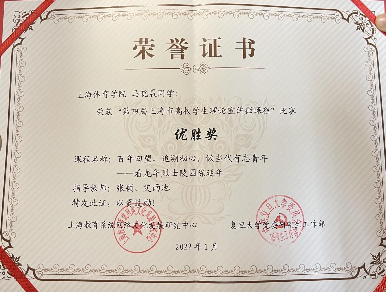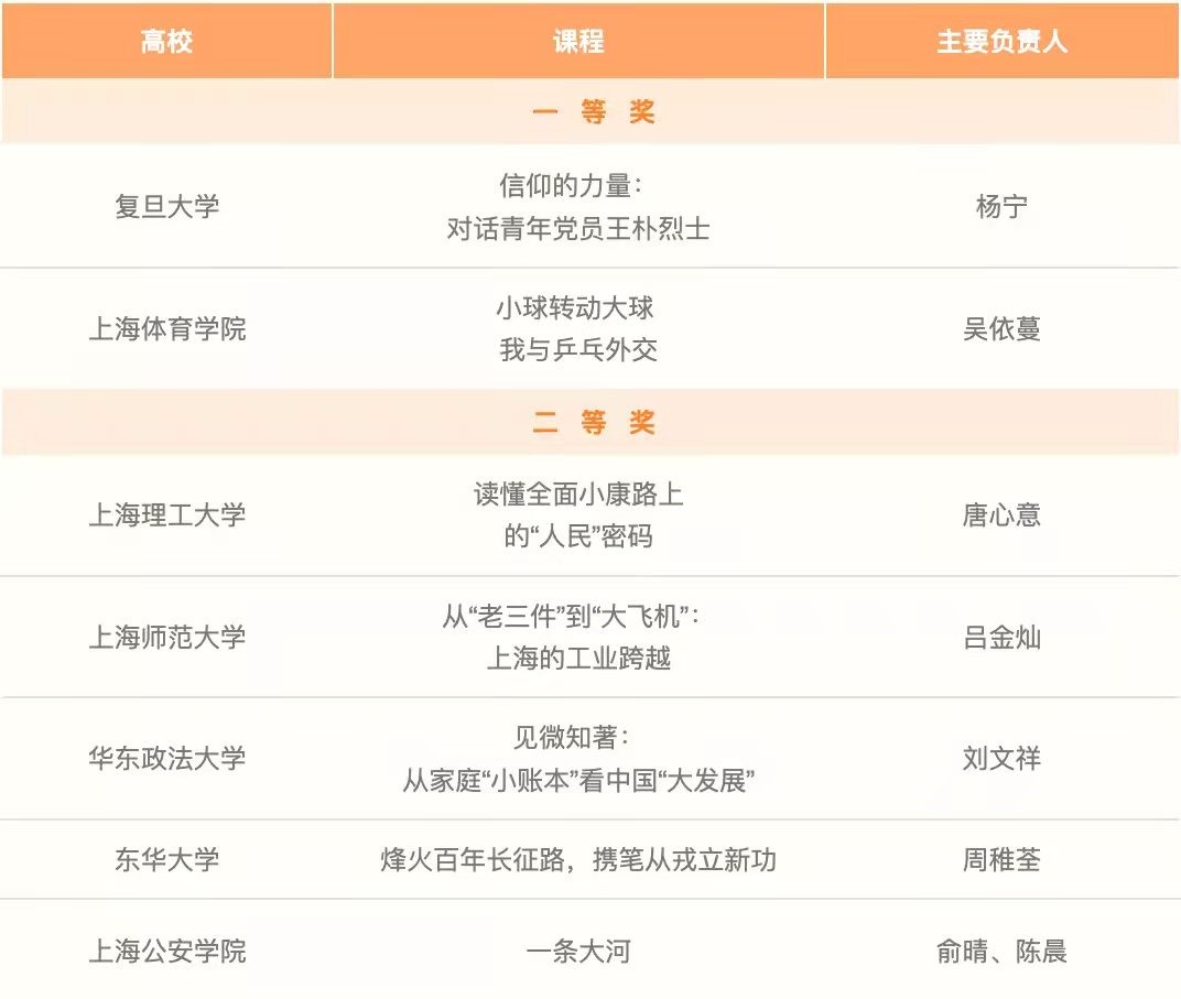 我校马克思主义学院敖天颖老师指导、吴依蔓同学负责的《小球转动大球,我与乒乓外交》课程荣获一等奖;马克思主义学院张颖老师指导、马晓晨同学负责的《百年回望,追溯初心,做当代有志青年,——看龙华烈士陵园陈延年》课程获得优胜奖。