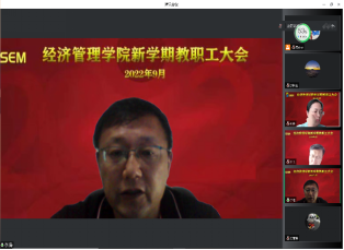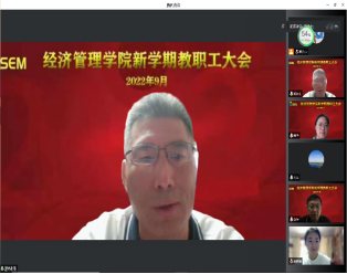 本网讯 2022年9月2日,经济管理学院线上召开新学期全体教职工大会,会议对新学期工作、疫情防控工作作出部署。上海体育学院副院长王陈出席会议,经济管理学院党政领导班子及全体教职工参加会议。会议由经济管理学院党委书记游林生主持。
