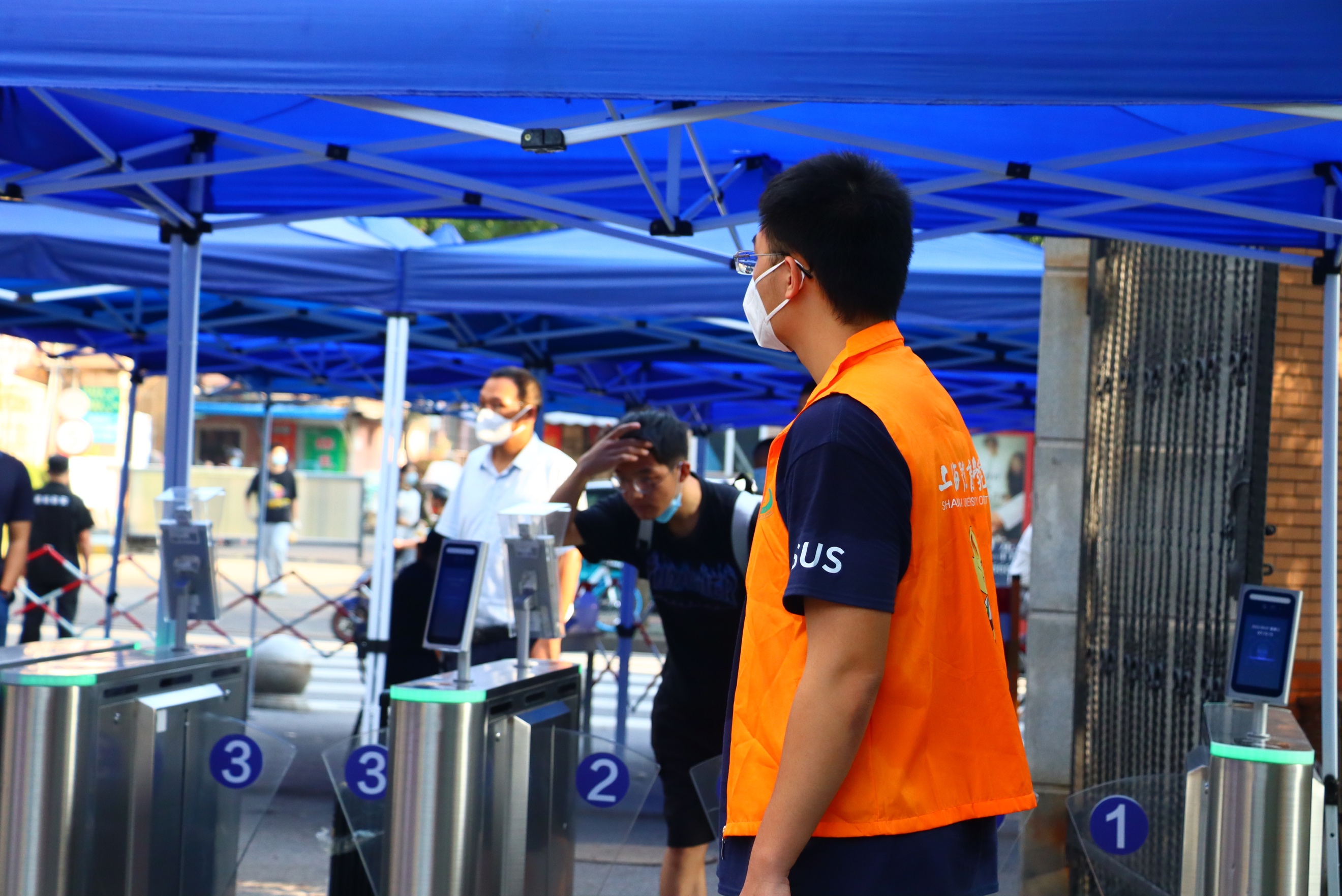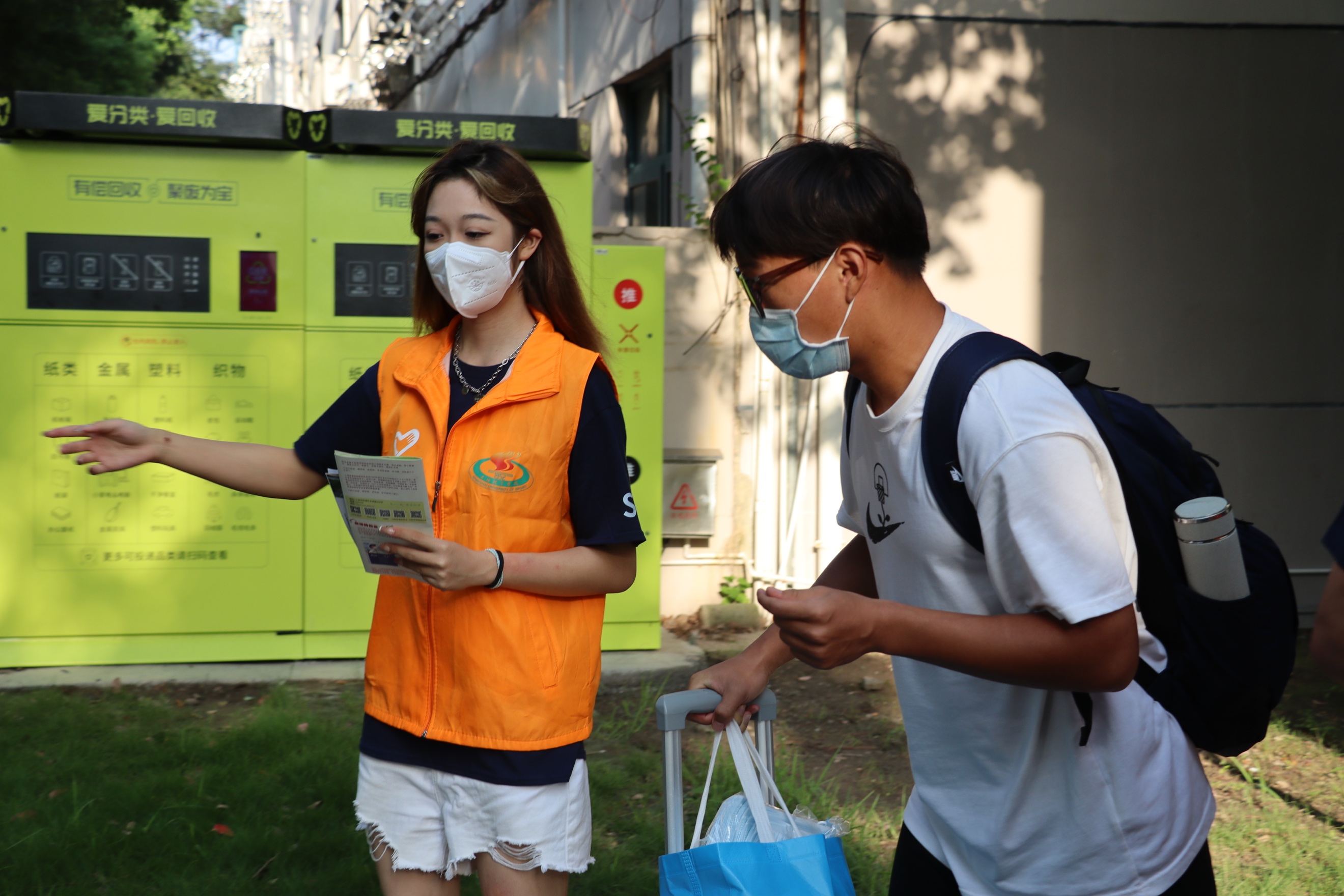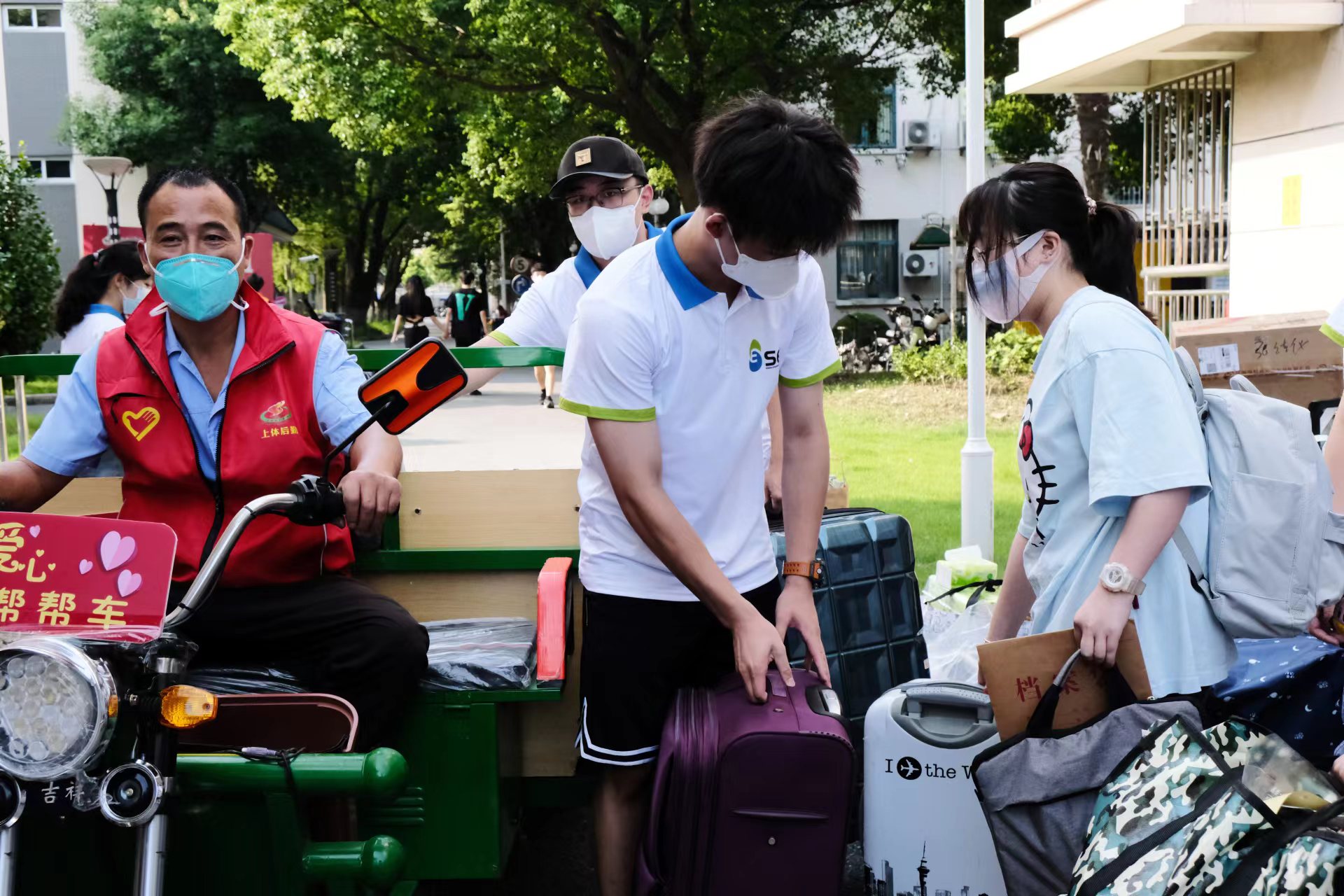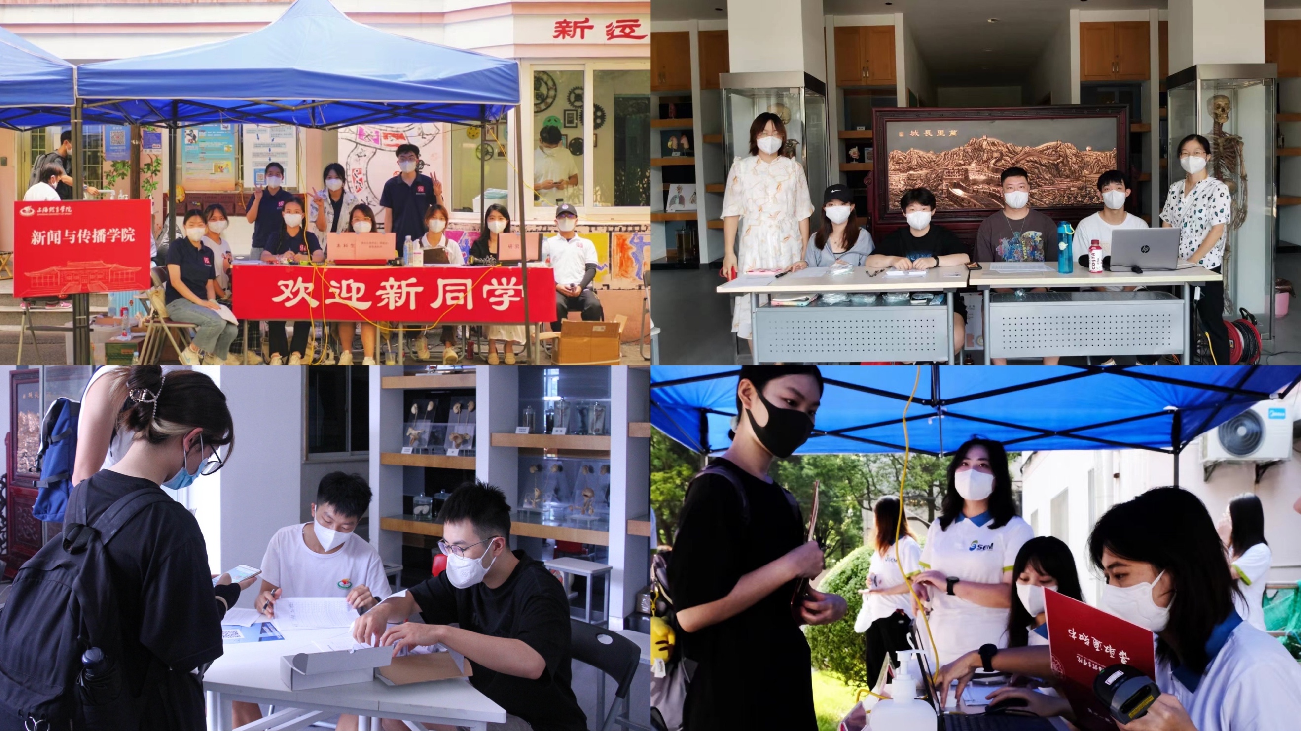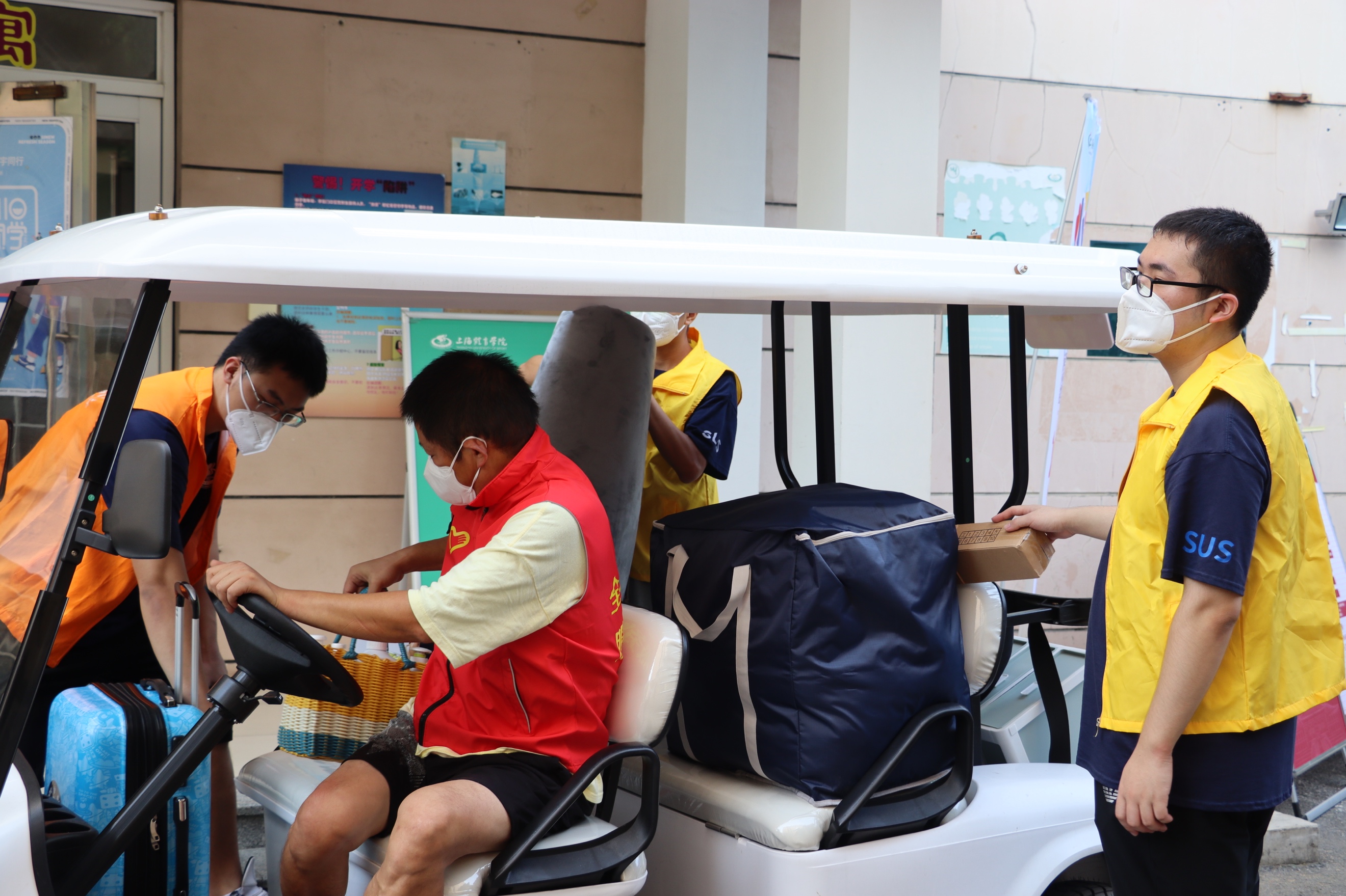 “同学你好!请登记”“同学这边走”迎新工作的背后还有默默无闻的医护人员、保安、宿管阿姨等;信息办、财务处等职能部门为了保障迎新工作顺利进行,也在两个宿舍区设置了线下咨询服务台。各站点、宿舍楼宇间、车棚核酸点、食堂前时刻穿梭着热情周到、友善得体的各条线教职工和志愿者同学们,他们铸成了送给上体新生的“第一张名片”,共同营造温煦有爱的“第一次相见”。