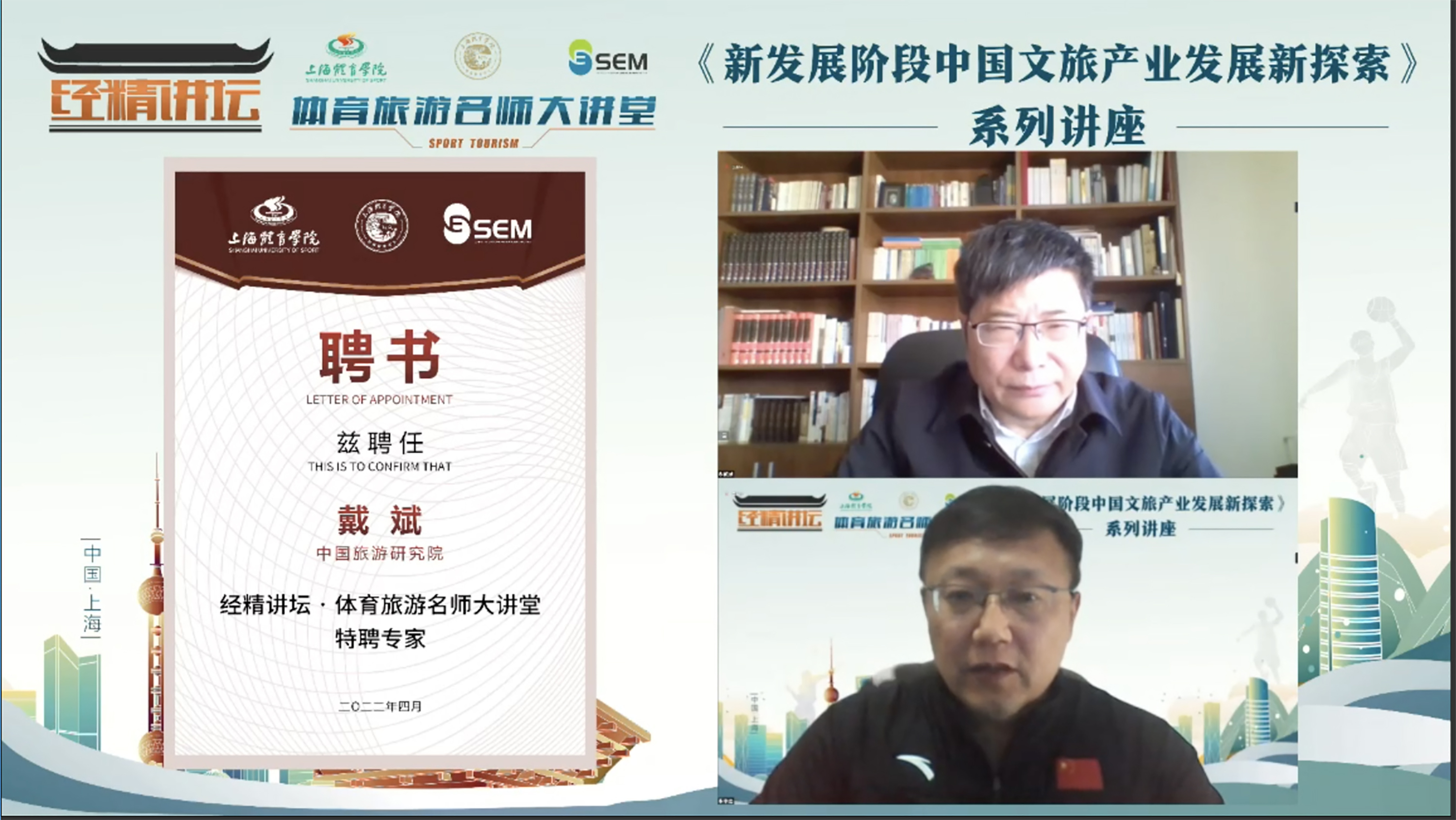 疫情的持续对我国的旅游消费,旅游企业及文旅专业学生的就业带来了全面挑战,为了鼓励我国文旅产业破茧成蝶、浴火重生,并给文旅专业从业人员及学生带来新方向、新思考、新探索。经济管理学院经过精心筹备,邀请了包括中国旅游研究院、北京交通大学等众多体育旅游名师开展系列讲座,讲座将从四月持续至六月,并在优酷、爱奇艺、Bilibili视频网站同步直播。