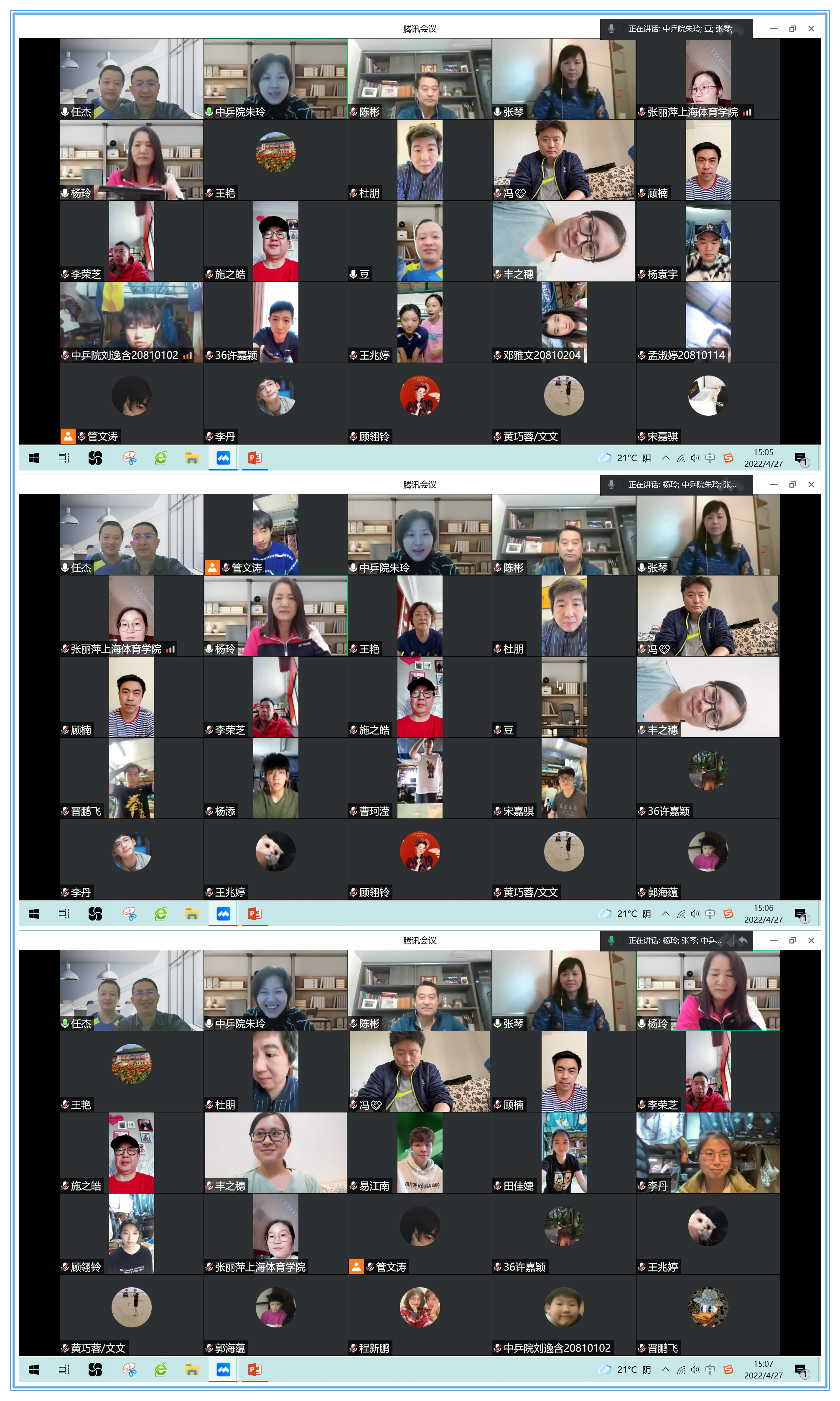 “云决赛”开始前,中乒院教师们和同学们在“云”上相见,互报平安。