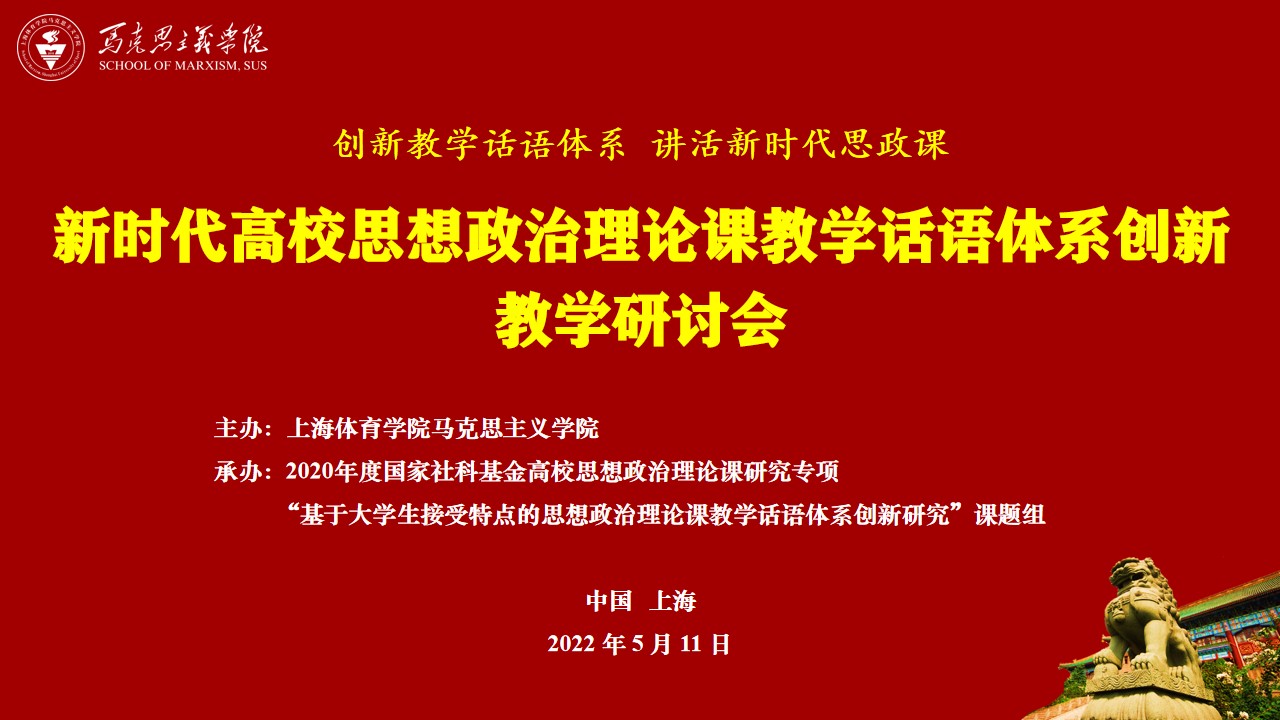 本网讯 为深入学习习近平总书记考察中国人民大学时的重要讲话精神,贯彻落实习近平总书记关于新时代思政课改革创新的系列重要论述精神,推动新时代思政课教学话语体系创新,5月11日下午,由马克思主义学院主办、2020年度国家社科基金高校思想政治理论课研究专项“基于大学生接受特点的思想政治理论课教学话语体系创新研究”课题组承办的“新时代高校思想政治理论课教学话语体系创新”教学研讨会在腾讯会议线上平台举行。上海体育学院党委书记李崟出席研讨会并致欢迎辞。