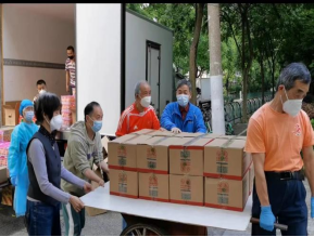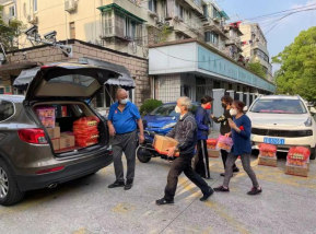 体院小区500弄、542弄和555弄三个小区老同志相对集中、人员多、岁数大等特点。退管会沈志华同志组织了第六支部书记严惠建、块长龚依琴和党员志愿者队伍为110余位老同志们派发物资。老党员张政老师用私家车做为短驳转运车,为物资转运发挥了重要作用。