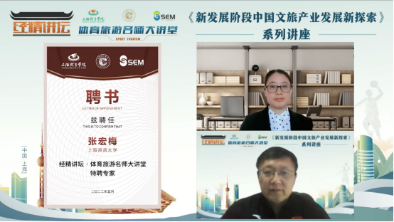 本网讯 5月28日下午,《旅游科学》主编张宏梅教授应邀做客我校“经精讲坛•体育旅游名师大讲堂”第七讲,讲座由经济管理学院院长李海主持。张宏梅教授同时也是上海师范大学旅游学院副院长,上海师范大学工商管理高原学科负责人,工商管理一级学科硕士点建设委员会主任委员,上海旅游高等专科学校副校长,在《Tourism Management》《旅游学刊》等国内外学术期刊发表论文100余篇,荣获省部级奖项4项,入选爱思唯尔2021年工商管理学科“中国高被引学者”榜单。她本次带来的讲座题为《国家公园的多元价值》,直播期间共吸引了千余人次观看。