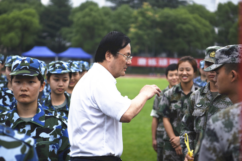 慰问中,党委书记戴健代表学校向全体参训师生发表了讲话。他强调,军训是大学生活中重要的一课,是传承军人精神和进行国防教育的重要方式,也是同学们感受军旅生活难能可贵的机会。他鼓励同学们通过军训的方式做一名“准军人”,在军训过程中,学会与教官相处、与同学相处,对于军训内容进行集中的学习、体验和感悟,让军训时光成为一生难忘的珍贵回忆。同时,他对全体参训学员提出了殷切希望,希望同学们秉承“身心一统 兼蓄竞攀”的校训精神,克服困难,迎接挑战,勇往直前,服从指挥,严格按照军训的要求,认真学习军训理论和军训技能,圆满地完成本次军训任务。讲话获得了在场全体师生和官兵的热烈掌声。